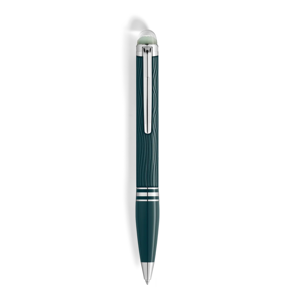 StarWalker PolarGreen da vida a la belleza de la aurora boreal. En la Tierra, los seres humanos pueden contemplar el cielo y transportarse a reinos maravillosos mientras presencian su grandioso espectáculo. La cúpula de la parte superior del capuchón está hecha de resina transparente y brilla con poca luz, recordando las encantadoras auroras danzantes del cielo nocturno. El patrón ondulado de la resina preciosa verde oscuro del capuchón y el cuerpo captura admirablemente el brillo espectral de las luces, y el acabado mate acentúa los reflejos. Los anillos de resina verde oscuro de la parte delantera realzan los accesorios recubiertos de platino del bolígrafo. N.º de identificación: MB132904 Peso físico: 31,6 g Dimensiones: 134,5 mm * 13,1 mm