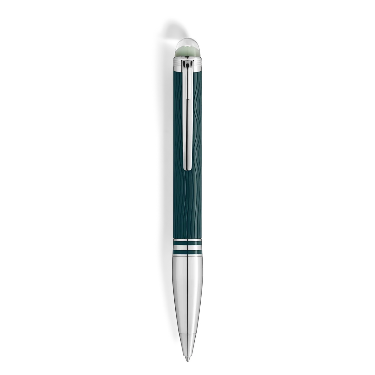 StarWalker PolarGreen da vida a la belleza de la aurora boreal. En la Tierra, los seres humanos pueden contemplar el cielo y transportarse a reinos maravillosos mientras presencian su grandioso espectáculo. La cúpula de la parte superior del capuchón está hecha de resina transparente y brilla con poca luz, recordando las encantadoras auroras danzantes del cielo nocturno. El patrón ondulado de la preciosa resina verde oscuro del cuerpo captura admirablemente el brillo espectral de las luces, y el acabado mate acentúa los reflejos. Los anillos de resina verde oscuro de la parte delantera realzan los accesorios recubiertos de platino del bolígrafo. N.º de identificación: MB132908 Peso físico: 42,5 g Dimensiones: 134,5 mm * 13,1 mm