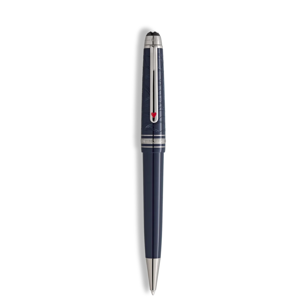 La colección Meisterstück Around the World in 80 Days se inspira en la famosa novela de aventuras de Julio Verne. El bolígrafo LeGrand, adornado con resina preciosa azul oscuro, narra el épico viaje del Sr. Fogg y Passepartout. Embarcándose en la última etapa desde Yokohama de vuelta a Londres pasando por Estados Unidos, el dúo atraviesa el vasto continente americano en tren. Sumérjase en los intrincados detalles: un tren elegantemente grabado con láser en el capuchón, un patrón de cadena de seguridad en el cono, que refleja un momento crucial en el que Passepartout separa el tren de la locomotora para salvar a la tripulación que fue atacada por los sioux.El diseño de la gorra captura las válvulas de presión y el humo que sale de la locomotora, mientras que el clip luce un naipe de corazones lacado en rojo, que simboliza la unión entre Phileas Fogg y la princesa Aouda. Además, los naipes representan la atrevida apuesta de Fogg de completar el viaje en solo 80 días. La parte superior de la gorra lleva grabada la cronología del viaje: 36 días desde Yokohama a Londres, culminando en un total de 80 días alrededor del mundo.