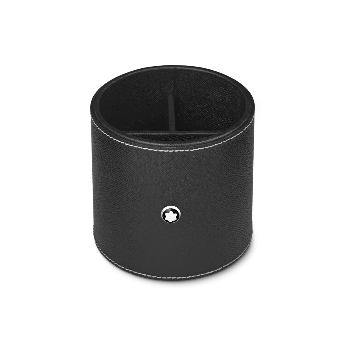 Descubra todos los detalles del portalápices redondo de cuero negro. Compre online en la tienda oficial de Montblanc.