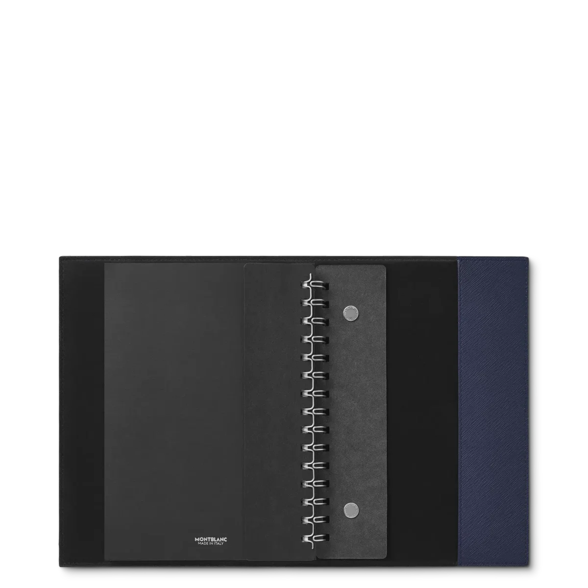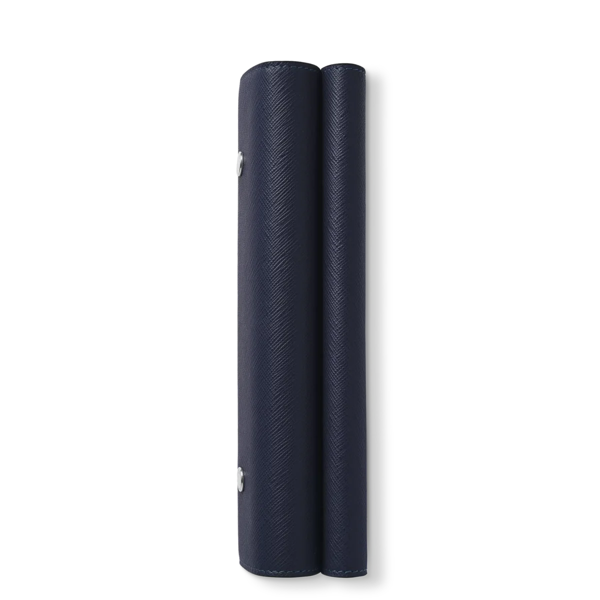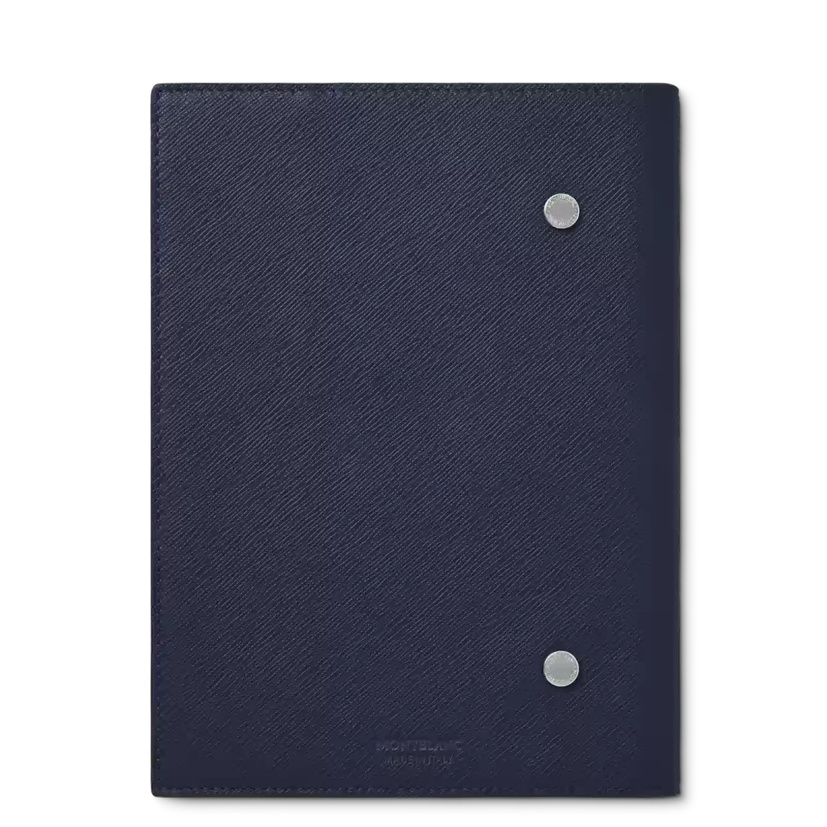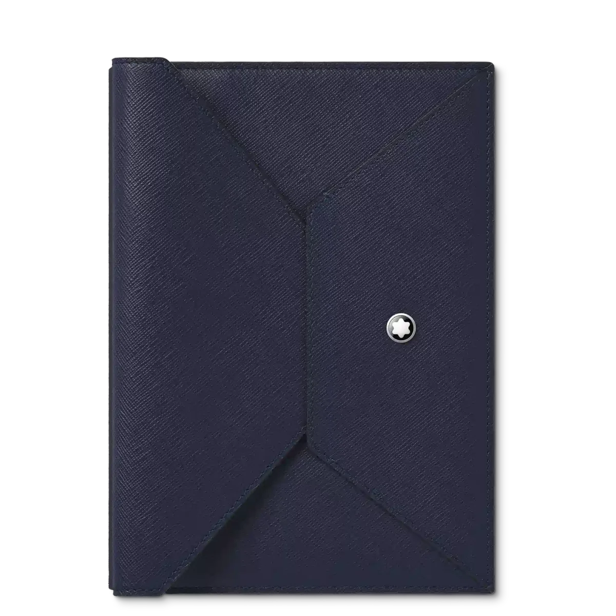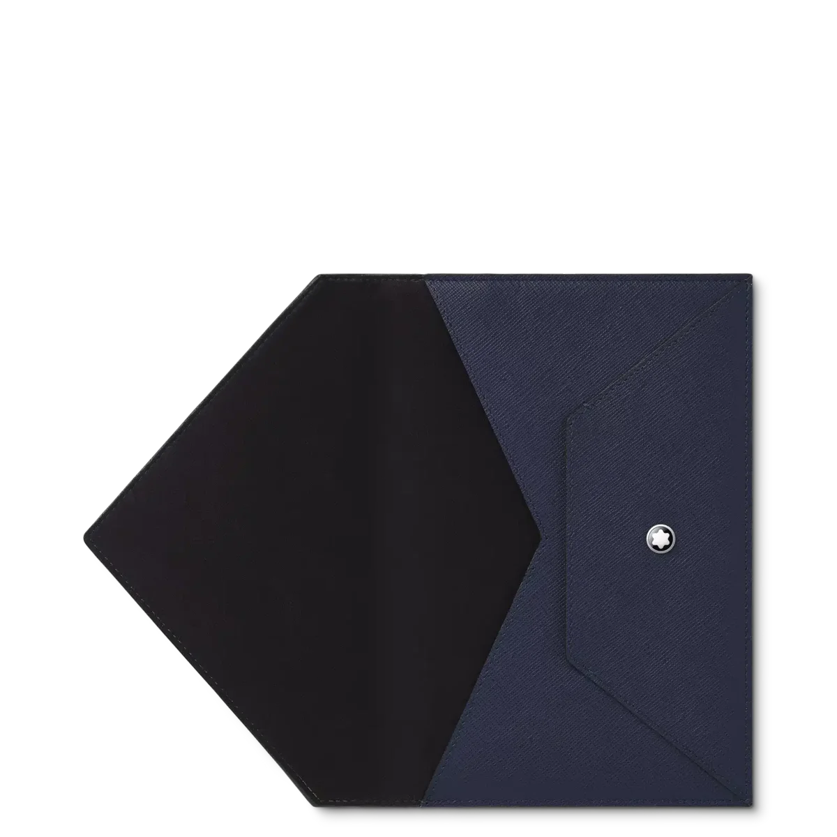 Cuaderno Montblanc Sartorial Envelope en piel saffiano azul tinta. En homenaje al mundo de la escritura, el diseño contemporáneo de este accesorio recuerda la forma de un sobre. Esta bolsa de piel cuenta con dos bolsillos para guardar objetos pequeños. El emblema de Montblanc adorna el cierre con solapa. El cuaderno Envelope viene con el recambio rayado n.º 146, que se fija con botones de presión. Dimensiones: 160 x 210 mm. Fabricado en Italia.