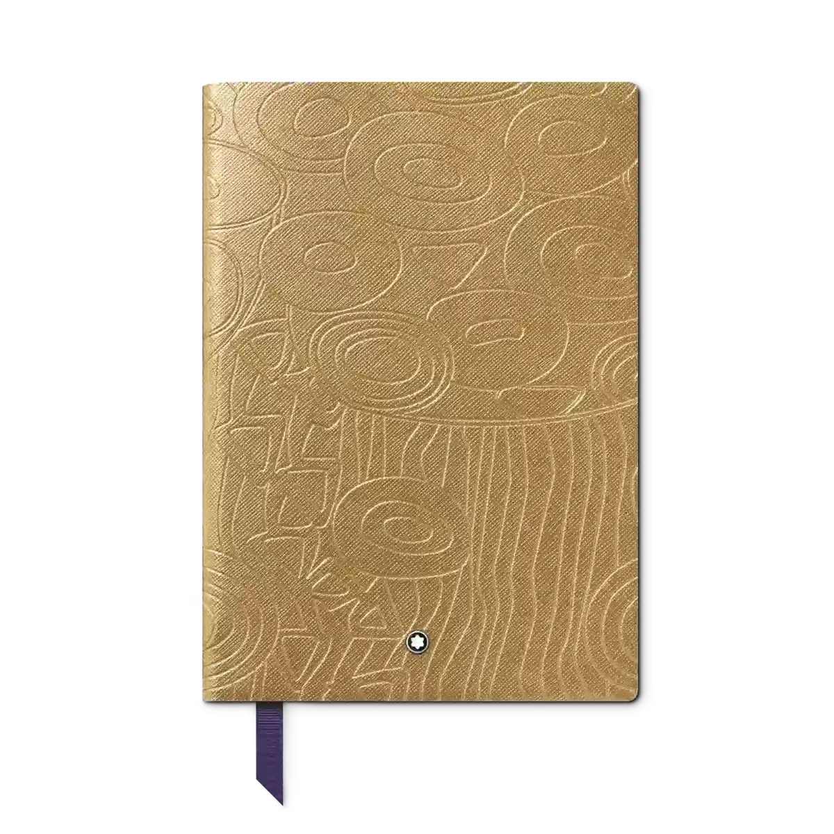 Cuaderno n.º 146 pequeño, Masters of Art Homage to Gustav Klimt, color dorado, rayado. Fabricado en piel con estampado saffiano y un patrón en relieve inspirado en el arte de Klimt. Fabricado en Italia. 96 hojas / 192 páginas. Dimensiones: 150 x 210 mm.