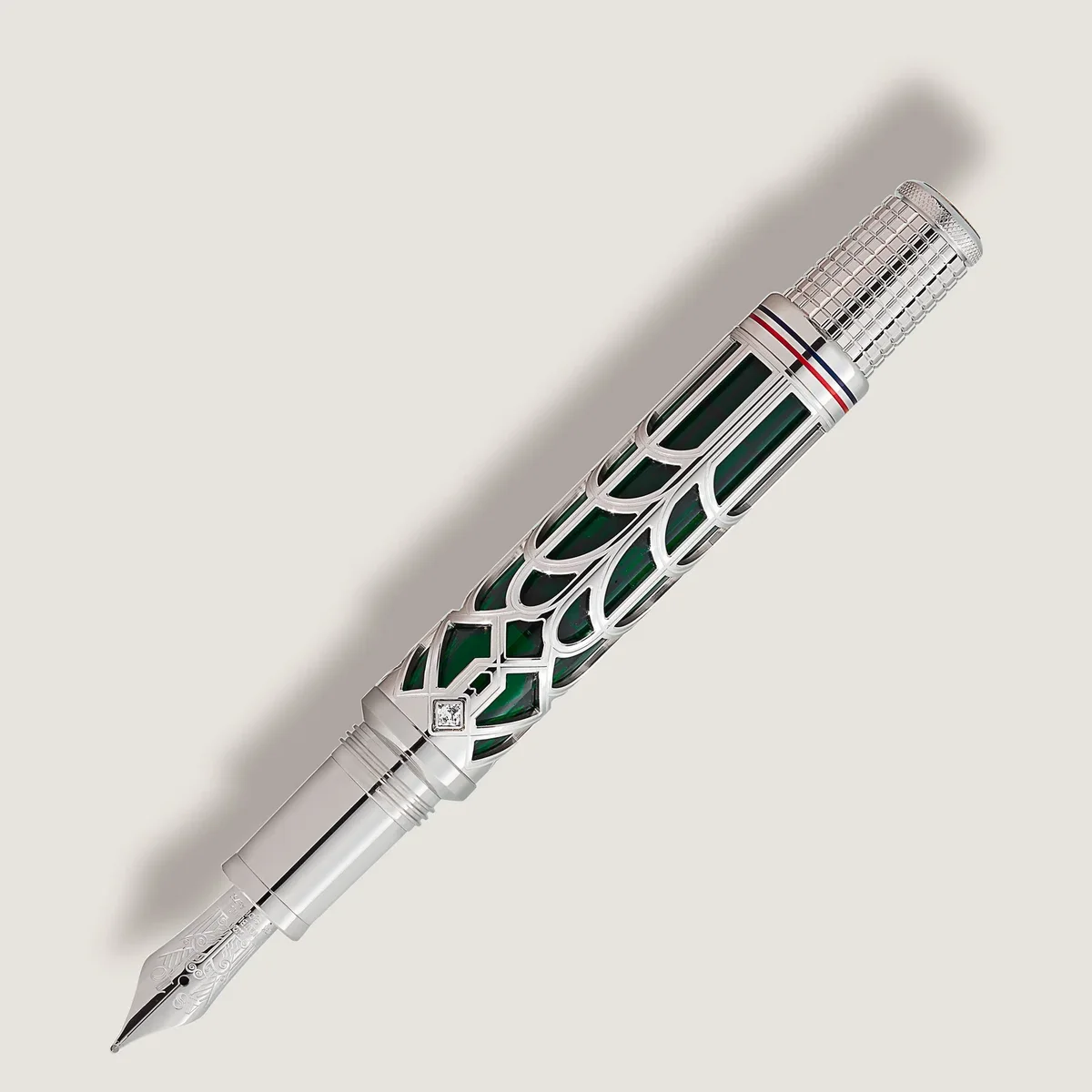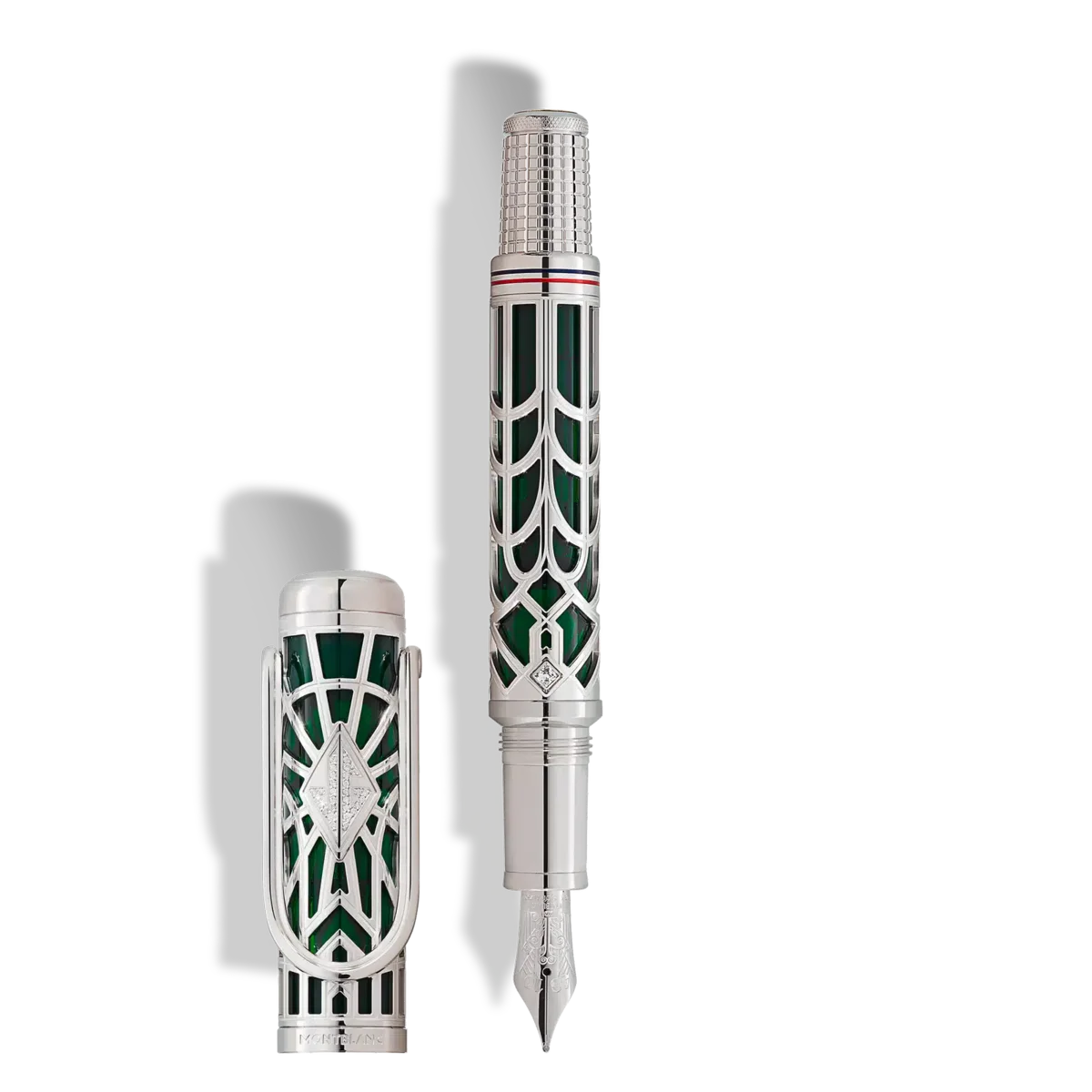 Hay novelas que pasan a la historia de la literatura y, al mismo tiempo, se convierten en símbolo de toda una época. El gran Gatsby, de F. Scott Fitzgerald, es una de esas joyas de la literatura estadounidense moderna. Publicada en 1925, la novela pinta un fascinante retrato de la era del jazz y los locos años veinte, una época de riqueza y autoindulgencia sin precedentes. La vibrante ciudad de Nueva York, las opulentas mansiones de Long Island y las deslumbrantes fiestas de la alta sociedad son el telón de fondo de la historia de Jay Gatsby, un misterioso millonario que no se detendrá ante nada para recuperar el amor perdido de su juventud, Daisy Buchanan. Montblanc rinde homenaje a esta obra maestra literaria, tan filmada y sinónimo del glamuroso mundo del Art Déco, con la edición limitada Great Characters Homage to The Great Gatsby 30. La decadencia de los locos años veinte, así como el deseo de lujo y opulencia que caracterizó la era del Art Déco, se plasman en muchos detalles del diseño de la edición limitada 30. Los arcos y líneas simétricos esqueletizados están elaborados en platino macizo Pt 950, el símbolo definitivo de riqueza y estatus que solían utilizar los joyeros famosos de la época para sus creaciones de alta calidad. Revelan la superficie verde oscuro y translúcida que hay debajo, que representa la luz verde del muelle de la casa de Daisy, símbolo del anhelo de un futuro mejor y del deseo de Gatsby de recuperar a Daisy. Este simbolismo también se refleja en las tsavoritas verdes engastadas a mano con maestría en forma del emblema de Montblanc en la parte superior de la tapa de platino macizo. El poder embriagador, aunque aparentemente ilusorio, del dinero se simboliza con el clip recubierto de platino en forma de pinza para billetes. Su abertura redondeada está decorada con las iniciales de Jay Gatsby, engastadas en platino macizo Pt 950 y diamantes, en forma de monograma romboidal Art Déco. Los diamantes de talla princesa del capuchón y el cuerpo completan el diseño. Otro guiño al movimiento Art Déco es el grabado puramente lineal del plumín de oro macizo Au 750 recubierto de rodio y elaborado a mano. Inspirado en los frascos Art Déco, muy de moda en aquella época, el ingenioso grabado del cono imita el tapón de rosca grabado de dichos frascos. El mito del sueño americano se evoca en los finos anillos con los colores de la bandera estadounidense que adornan el cono. Un detalle de un dólar de la paz estadounidense original acuñado entre 1921 y 1935, que refleja el periodo de la novela, se incorpora artísticamente al cono.El número 30 es significativo en más de un sentido. Hace referencia al número limitado de Great Characters Homage to The Great Gatsby Limited Edition 30, que marca el 30º cumpleaños de Nick Carraway, nuestro fiel guía por el opulento mundo de East y West Egg. En medio de la tensión de un enfrentamiento crucial entre Gatsby y su némesis Tom Buchanan, Nick se da cuenta de que es su cumpleaños: «No… Acabo de recordar que es mi cumpleaños». Tenía treinta años. El siniestro y amenazador camino de una nueva década se extendía ante mí. El número 30 también hace referencia a Tom Buchanan. El enigmático marido de Daisy y rival de Gatsby tiene la misma edad que nuestro narrador. Nick describe el complejo carácter de Tom de la siguiente manera: Había cambiado desde sus años en New Haven. Ahora era un hombre fornido de treinta años, con el pelo rubio pajizo, la boca bastante dura y un comportamiento altivo.