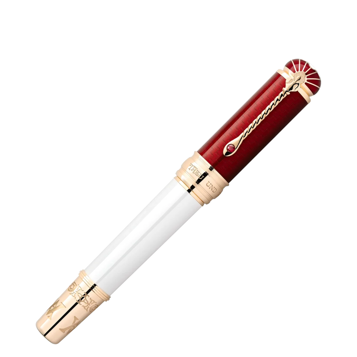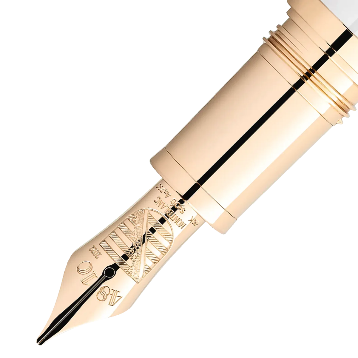 La edición Montblanc Patron of Art de 2022 está dedicada a la reina Victoria y al príncipe Alberto. La edición limitada 4810 es una edición dedicada a una pareja extraordinaria: una edición rinde homenaje a la reina Victoria y otra a su consorte, el príncipe Alberto. La edición limitada Montblanc Patron of Art Homage to Albert 4810 celebra al joven Alberto y presenta un cuerpo lacado en blanco perla, así como un capuchón lacado en tono burdeos translúcido con un patrón especial en la parte inferior. Los accesorios están recubiertos de oro. La forma del clip es un homenaje al cetro de su esposa y está adornado con una piedra sintética roja. La parte superior del capuchón está inspirada en la cúpula del palacio de cristal y está adornada con el emblema de Montblanc, realizado en resina preciosa blanca. Mientras que el anillo del capuchón presenta la cita grabada «treu und fest», un grabado especial decora el cono. Como homenaje a su escudo de armas personal, el plumín de oro macizo Au 750 hecho a mano lleva un relieve inspirado en el escudo de armas de Sajonia. Con el oro característico y/o el recubrimiento de oro característico, Montblanc describe el tono iluminado del oro amarillo que se ha convertido en un tono muy apreciado para los instrumentos de escritura de la Maison.