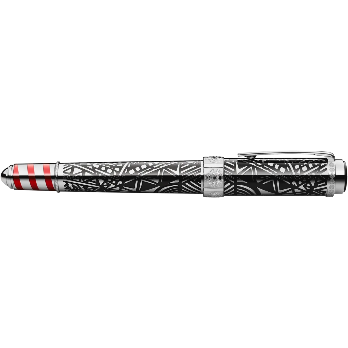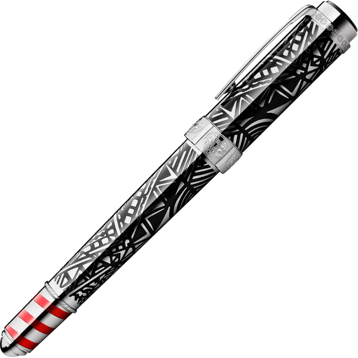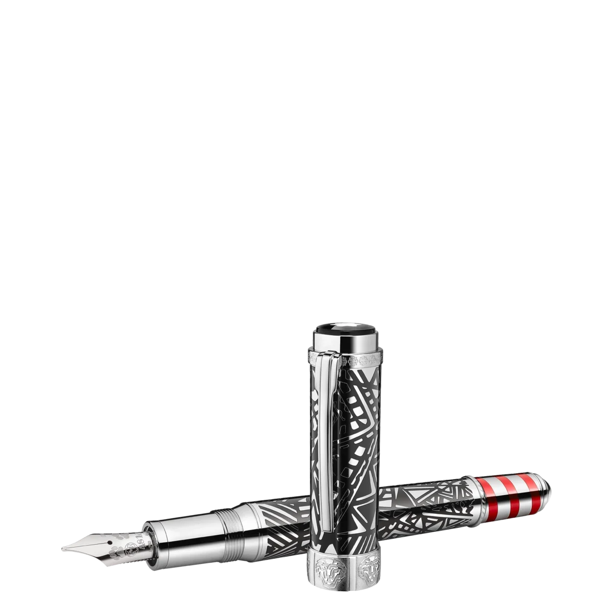 Peggy Guggenheim fue una de las coleccionistas y expositoras de arte contemporáneo más influyentes de Estados Unidos. Numerosos artistas jóvenes, como Salvador Dalí, Pablo Picasso y Jackson Pollock, cuyas obras Peggy Guggenheim mostró en Europa y América, le deben sus primeros éxitos. El diseño lineal del clip y el capuchón, así como las líneas y formas de las incrustaciones de laca negra en el capuchón y el cuerpo recubiertos de platino, se inspiran en las obras Art Déco de su colección. La espiral de incrustaciones de laca roja en el cono representa los postes de amarre rayados que bordean los canales venecianos. Las cabezas de león grabadas en el anillo del capuchón hacen referencia al palacio veneciano de Peggy Guggenheim, el Palazzo Venier dei Leoni, así como al león de San Marcos, símbolo de Venecia.