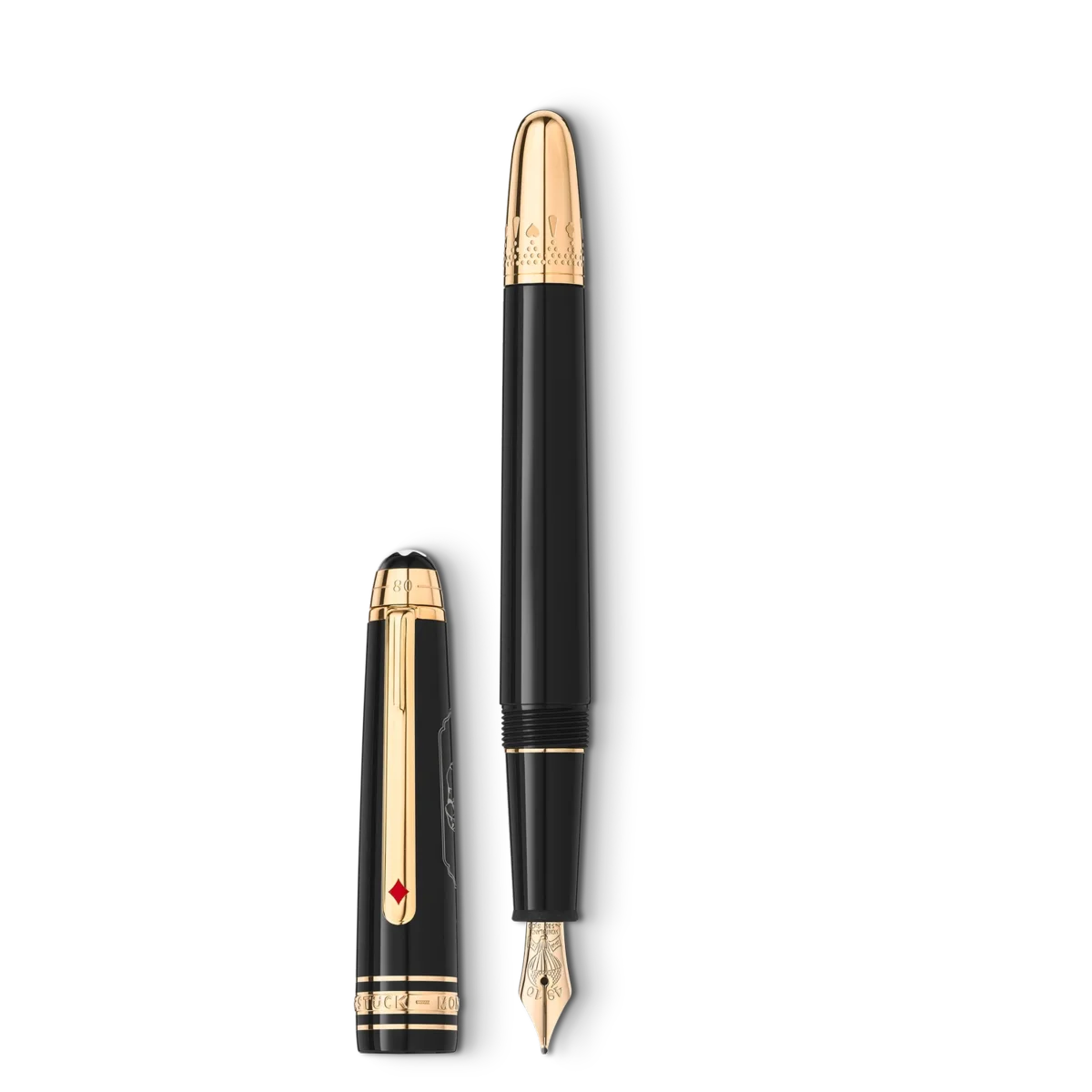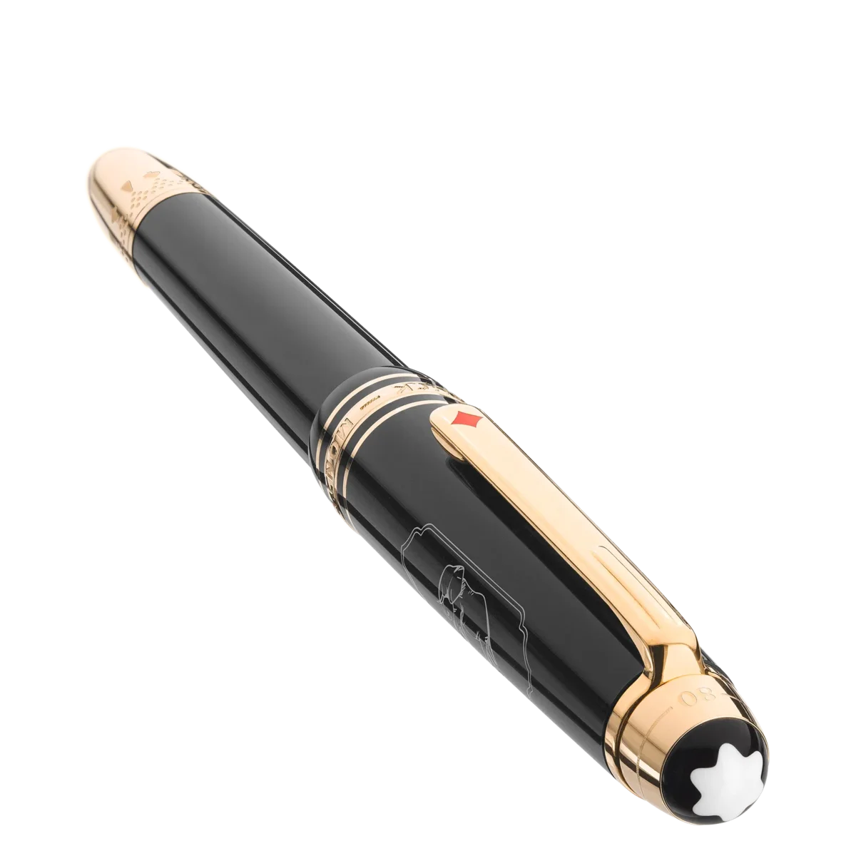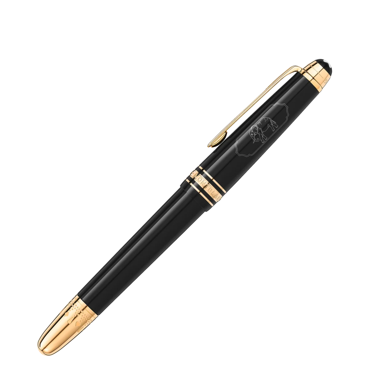 La colección Meisterstück Around the World in 80 Days se inspira en la famosa novela de aventuras de Julio Verne. La pluma estilográfica Classique, fabricada en resina preciosa antracita, se basa en la segunda etapa del viaje, de Bombay a Yokohama. En esta parte de la aventura, los protagonistas viajan a lomos de un majestuoso elefante, que aparece representado en un cartucho en el capuchón. El clip presenta un palo de diamantes lacado en rojo, símbolo del juego y de las cartas, y el cono está grabado con un motivo inspirado en las joyas de la princesa Aouda y los palos de las cartas. La parte superior del capuchón lleva grabada la duración del viaje, 25 días de Bombay a Yokohama y 80 días en total. El instrumento de escritura está rematado con un plumín de oro de 18 quilates hecho a mano y adornado con el globo aerostático con 20/10 y 14/11: el señor Fogg sale de Bombay a las 20:00 horas del 20 de octubre y de Yokohama a las 18:00 horas del 14 de noviembre.
