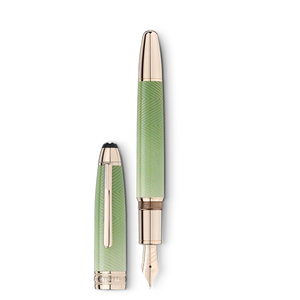 La pluma estilográfica Meisterstück Calligraphy Solitaire Celadon Dégradé se inspira en el encuentro entre el arte y la escritura. Esta pieza es un homenaje contemporáneo a algunas de las artesanías chinas más famosas y atemporales: la porcelana celadón y el tejido de bambú. El instrumento de escritura, con lacado degradado en color celadón, se completa con el característico clip y accesorios recubiertos de oro. La pluma estilográfica está coronada por la innovadora plumilla curvada, fabricada a mano en oro macizo Au750 / 18K y adornada con tres delicadas líneas paralelas, un símbolo inspirado en los movimientos de la caligrafía. La plumilla curvada permite una gran variedad de estilos de escritura y grosores de trazo, dependiendo del ángulo y la orientación con la que se sostenga el instrumento de escritura. Con el baño de oro característico y/o el recubrimiento de oro característico, Montblanc describe el tono iluminado del oro amarillo que se ha convertido en un tono muy apreciado para los instrumentos de escritura de la Maison.