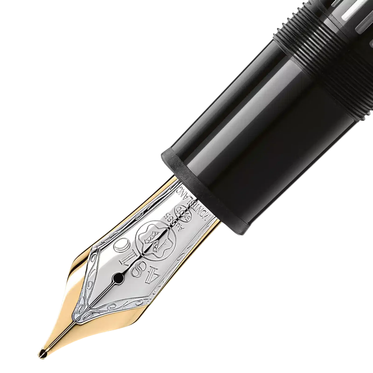 La Meisterstück LeGrand, fabricada en preciosa resina de color negro intenso con detalles chapados en oro, coronada por el emblema de la estrella blanca y rematada con un plumín de oro hecho a mano, se convierte en un icono del diseño de Montblanc.