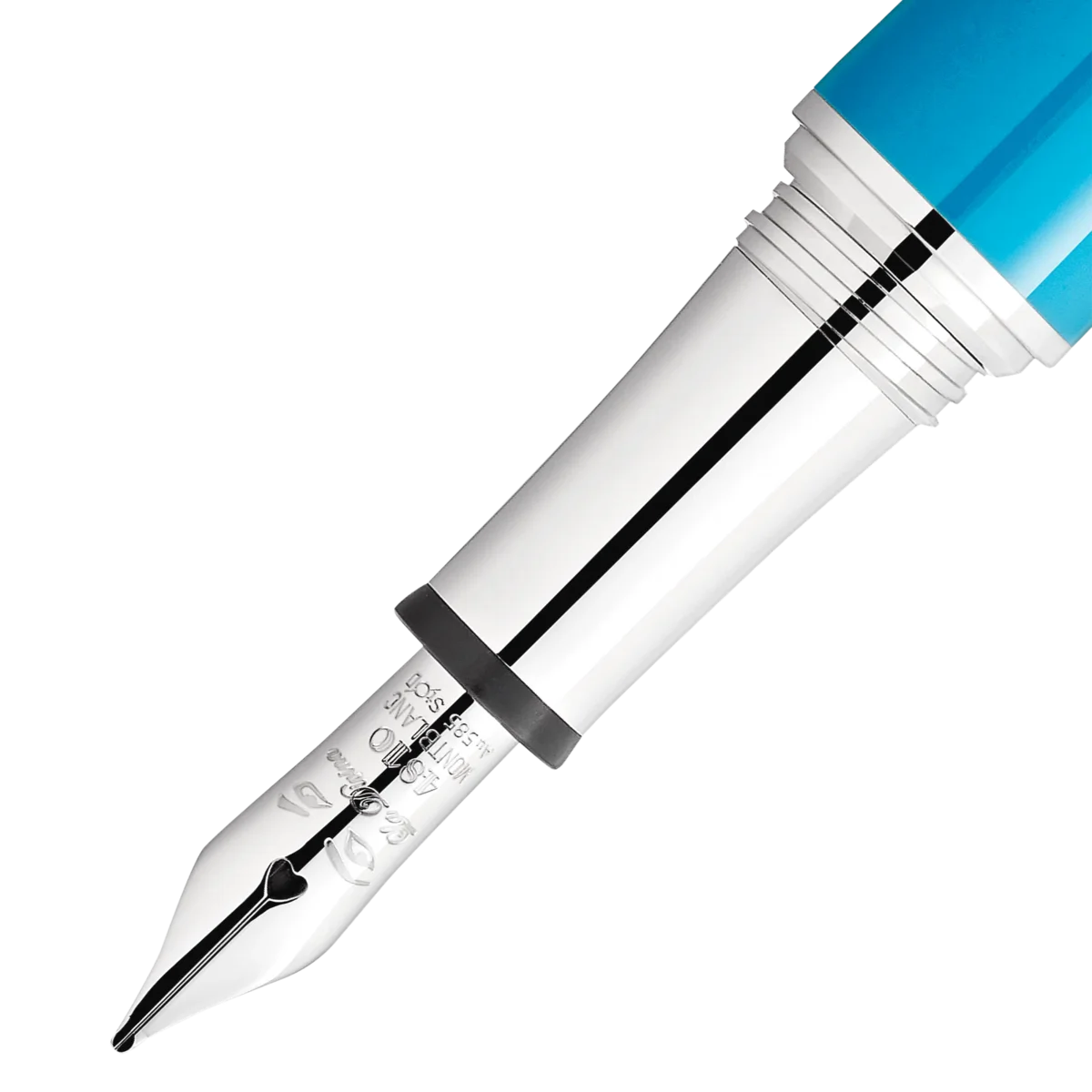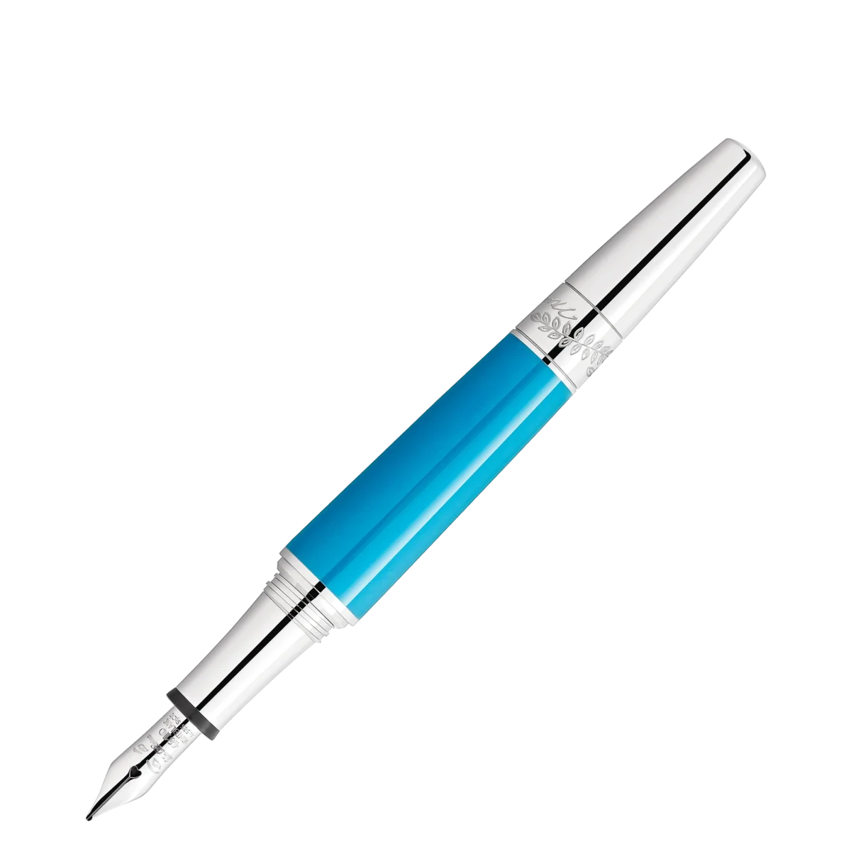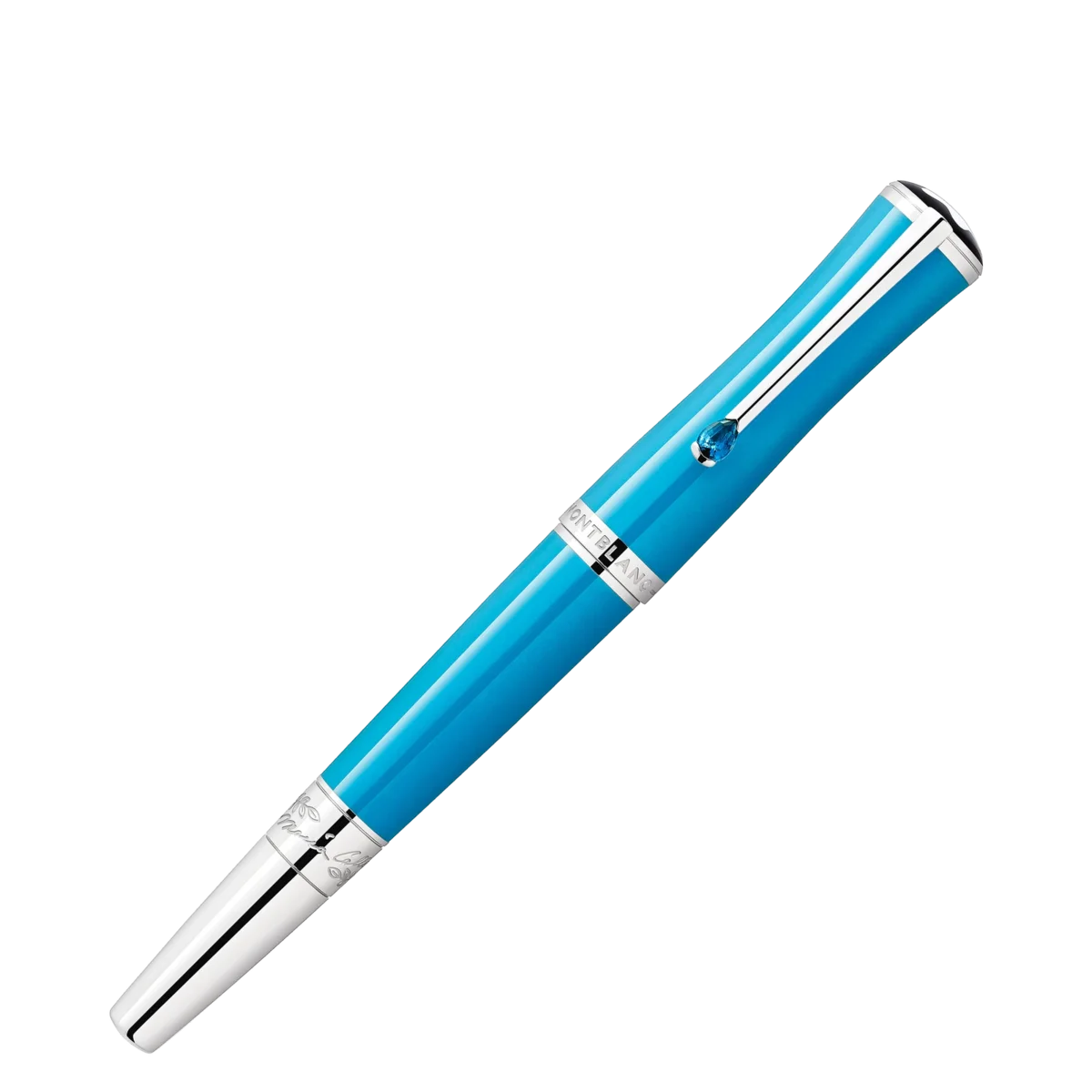 La edición especial Montblanc Maria Callas en color turquesa está dedicada a una de las sopranos más carismáticas del siglo XX y apreciada como icono de estilo. Con su talento, pasión y personalidad, encarnó un cierto ideal de diva de la ópera. En algunos de los teatros de ópera más importantes del mundo, desde La Scala de Milán hasta la Ópera de París y la Ópera Metropolitana de Nueva York, se la conocía como «La Divina». La edición destaca uno de sus colores favoritos, el turquesa, en la preciosa resina del capuchón y el cuerpo, al tiempo que refleja la elegante belleza de Maria Callas en su silueta esbelta y elegante. En recuerdo de su patria griega, rodeada por el mar, el clip recubierto de platino está decorado con una piedra sintética cuyo color recuerda el radiante azul turquesa del mar Egeo. Un detalle del vestuario de uno de sus papeles más reconocibles del bel canto, «Norma» de Bellini, se refleja en un patrón de hojas de laurel que rodean el cono recubierto de platino de la edición, junto con la firma en relieve de la célebre soprano. El plumín artesanal de oro macizo Au 585 recubierto de rodio está grabado con los ojos de gato delineados con kohl tan característicos de su imagen, así como con el nombre inseparable de Maria Callas: «La Divina».