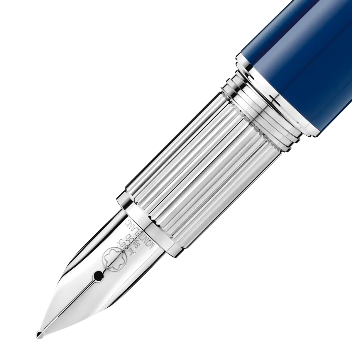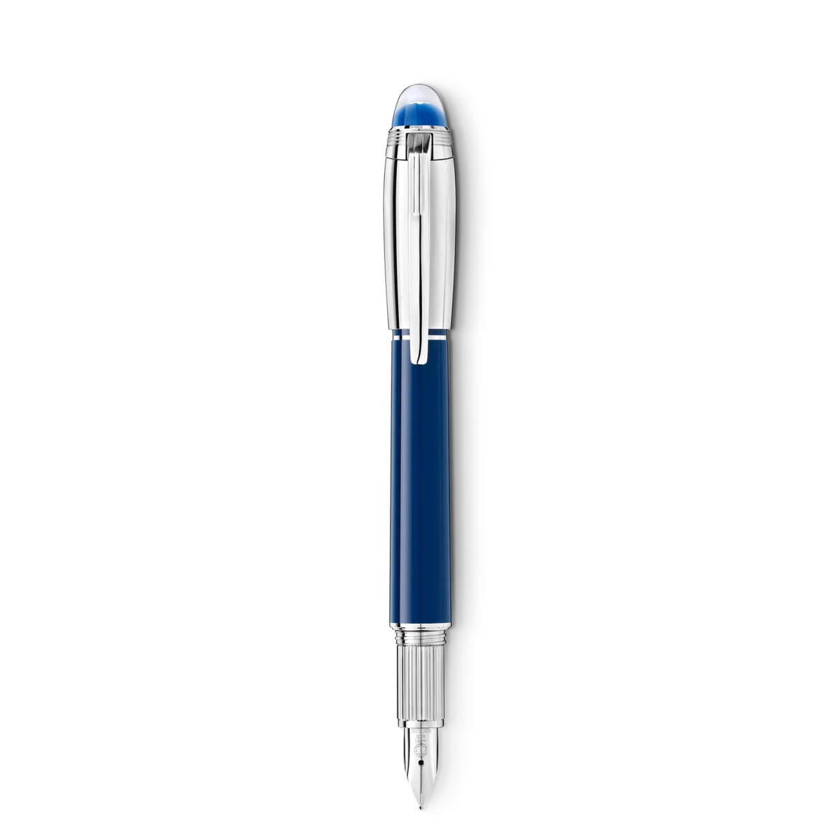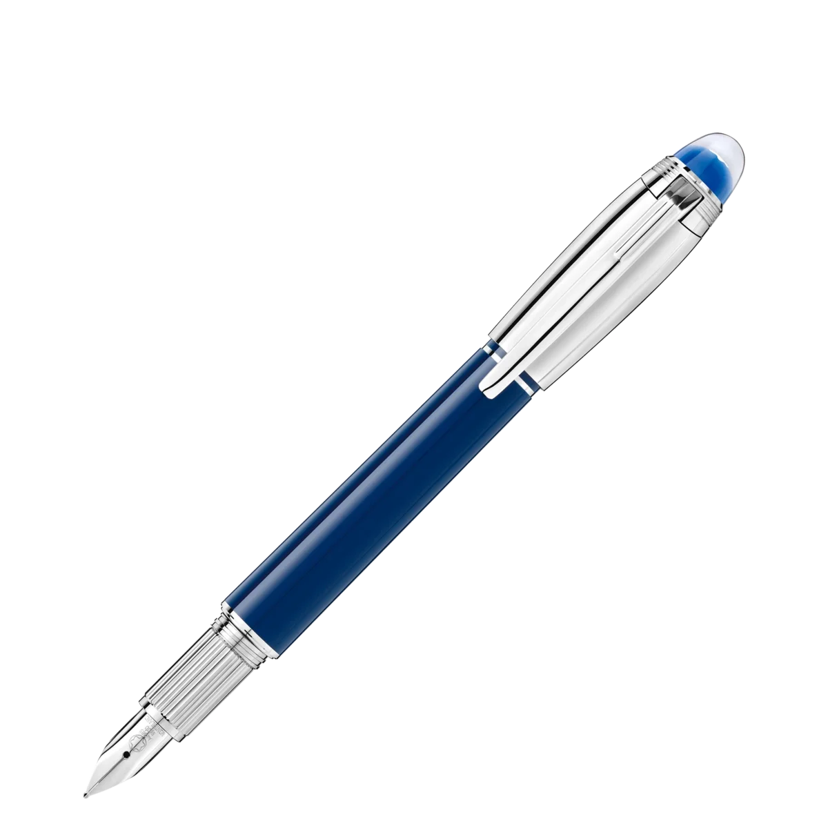 StarWalker Blue Planet trata sobre caminar entre las estrellas, explorar el cosmos y galaxias lejanas, y formar parte de una de las aventuras más misteriosas y poderosas que la humanidad haya emprendido jamás: la exploración espacial. Al acercarnos a nuestro planeta Tierra, nos inspiramos en el agua, la fuente de la vida. La tecnología del emblema StarWalker presenta una cúpula azul translúcida con una estrella flotando en la parte superior, que representa la Tierra emergiendo sobre el horizonte lunar vista desde la Luna. La pluma estilográfica StarWalker Blue Planet Doué viene con un capuchón y accesorios recubiertos de platino y un cuerpo de resina preciosa azul. La pluma estilográfica está fabricada a mano con un plumín de oro Au585 /14 K recubierto de rodio.