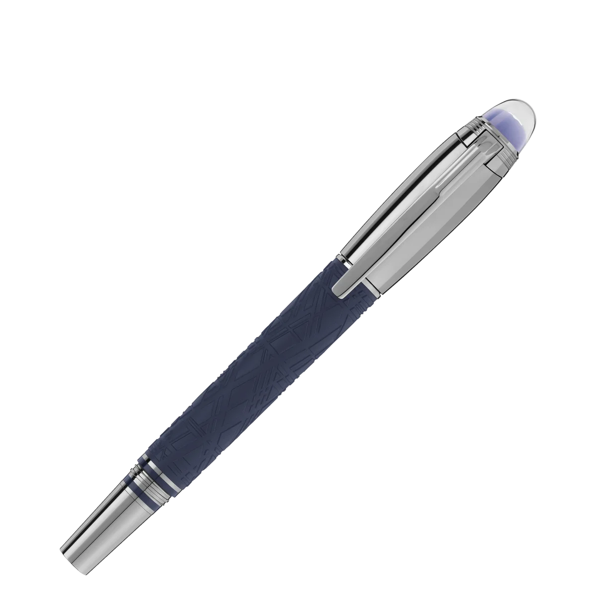 StarWalker SpaceBlue mira más allá del planeta Tierra y se dirige hacia las estrellas y la galaxia. Esta nueva colección StarWalker aporta un nuevo aspecto al cuerpo de resina, con un diseño que recuerda las intrincadas estructuras del patrón de Widmanstätten, una de las creaciones más hipnóticas de la naturaleza. El capuchón y los accesorios metálicos están recubiertos de rutenio oscuro, acompañado de un tono azul espacio profundo para la resina preciosa mate, que recuerda los matices de un cielo estrellado. Además, el subdomo de la parte superior del capuchón, sobre el que flota el emblema de Montblanc, es de color azul espacio profundo. La pluma estilográfica está fabricada a mano con un plumín de oro Au 585 recubierto de rutenio. N.º de identificación: MB130214. Peso físico: 37,25 g. Dimensiones: 135,7 mm * 14,9 mm.