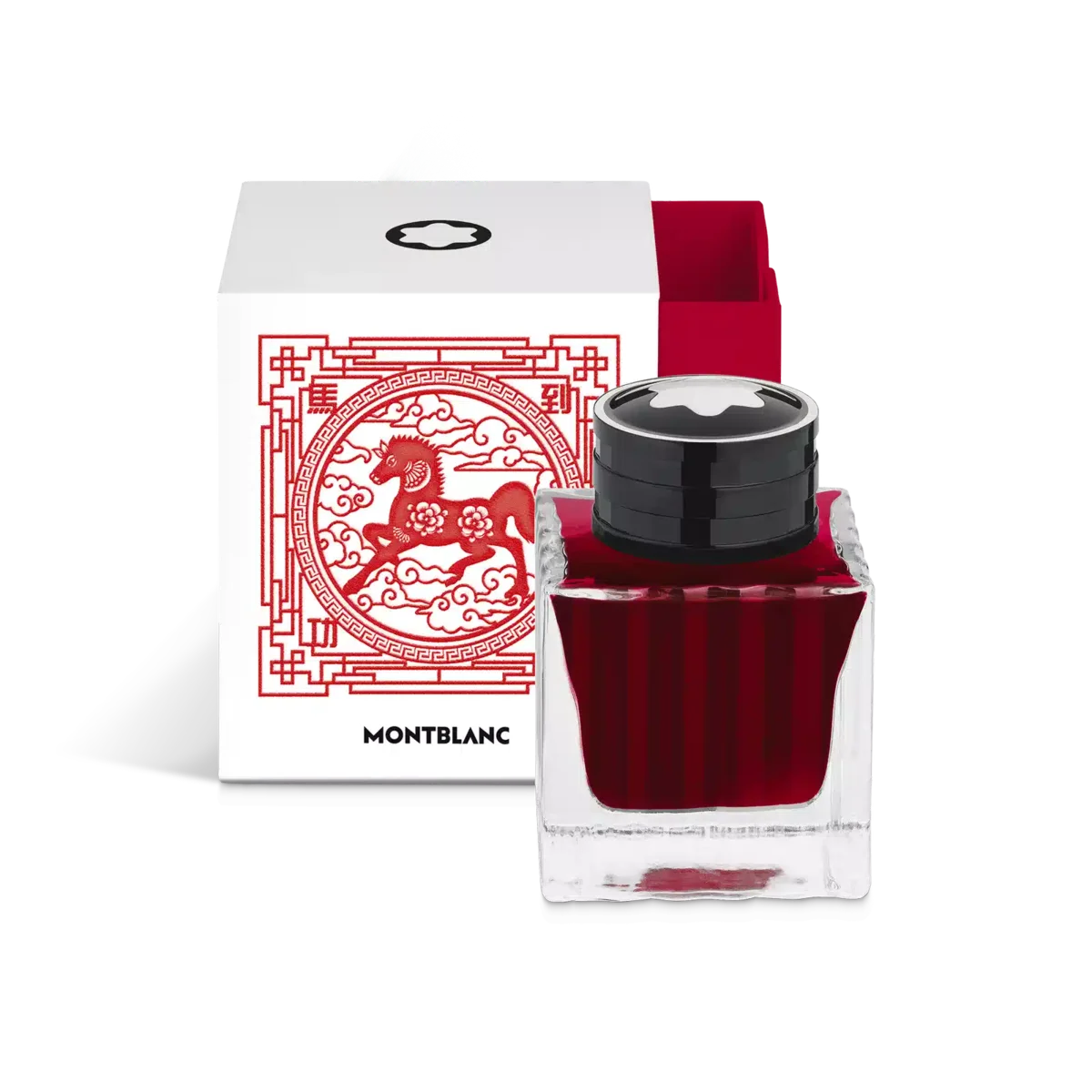 Botella de tinta Montblanc, The Legend of Zodiacs, El caballo, rojo – 50 ml Las botellas de tinta Montblanc Special Edition vienen en un envase cuadrado que evoca los conceptos y temas de cada colección, lo que las convierte en valiosos objetos de colección para los entusiastas de Montblanc.