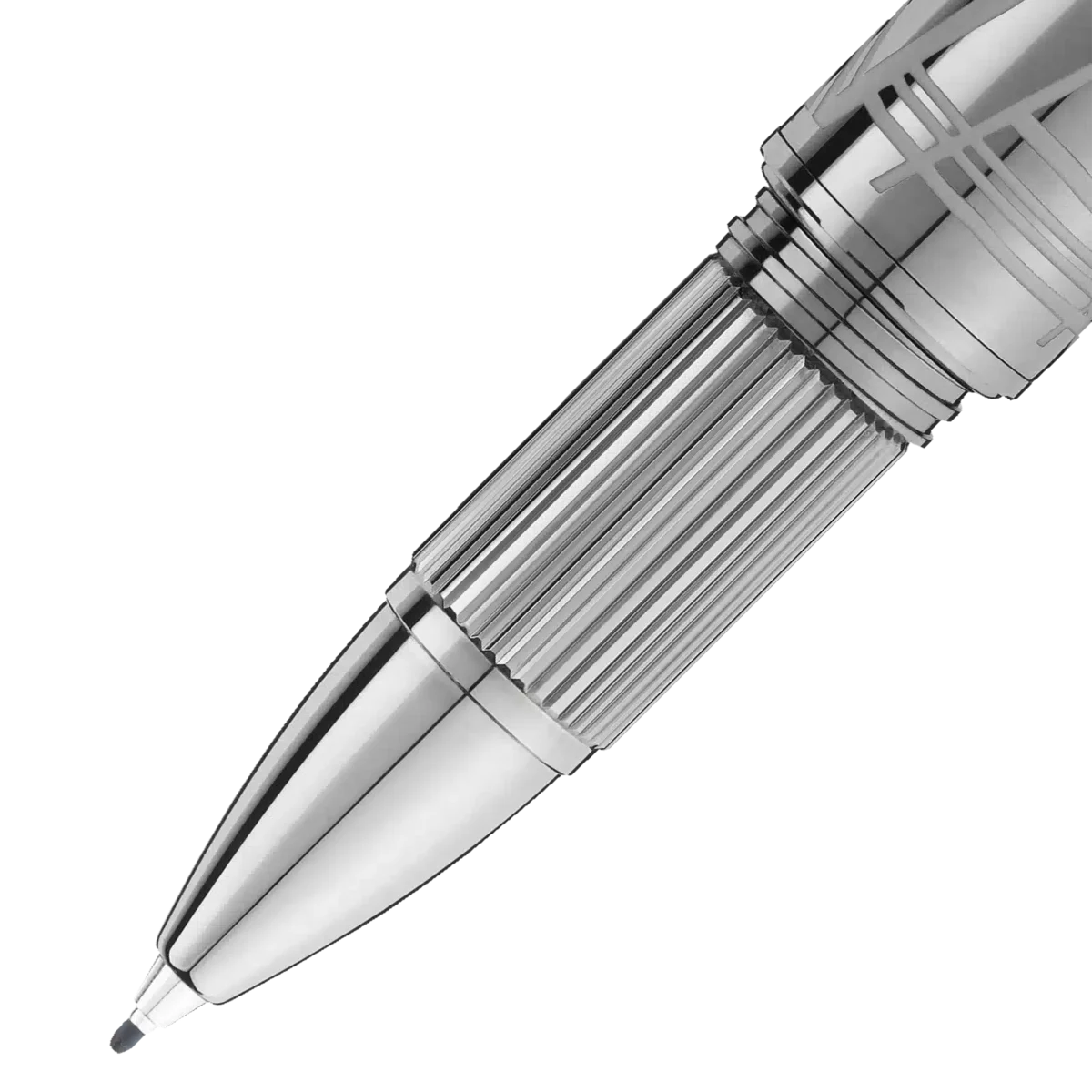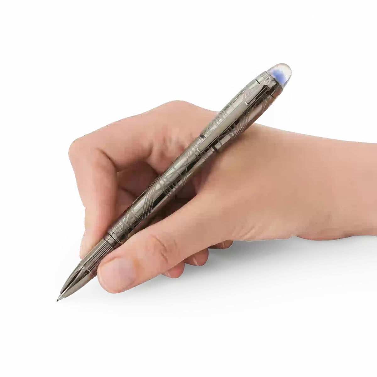 StarWalker SpaceBlue mira más allá del planeta Tierra y se dirige hacia las estrellas y la galaxia. Esta nueva colección StarWalker aporta un nuevo aspecto al capuchón y al cuerpo metálicos, con un diseño que recuerda las intrincadas estructuras del patrón de Widmanstätten, una de las creaciones más hipnóticas de la naturaleza. Todas las piezas metálicas están recubiertas de rutenio oscuro, acompañadas de una subcúpula azul espacio profundo en la parte superior del capuchón, que recuerda los tonos de un cielo estrellado, sobre el que flota el emblema de Montblanc.