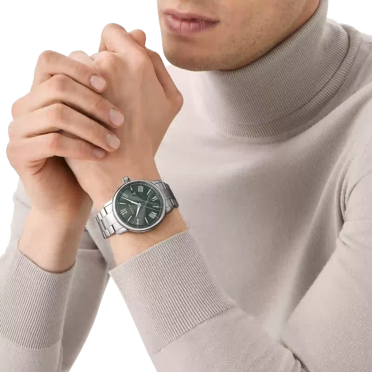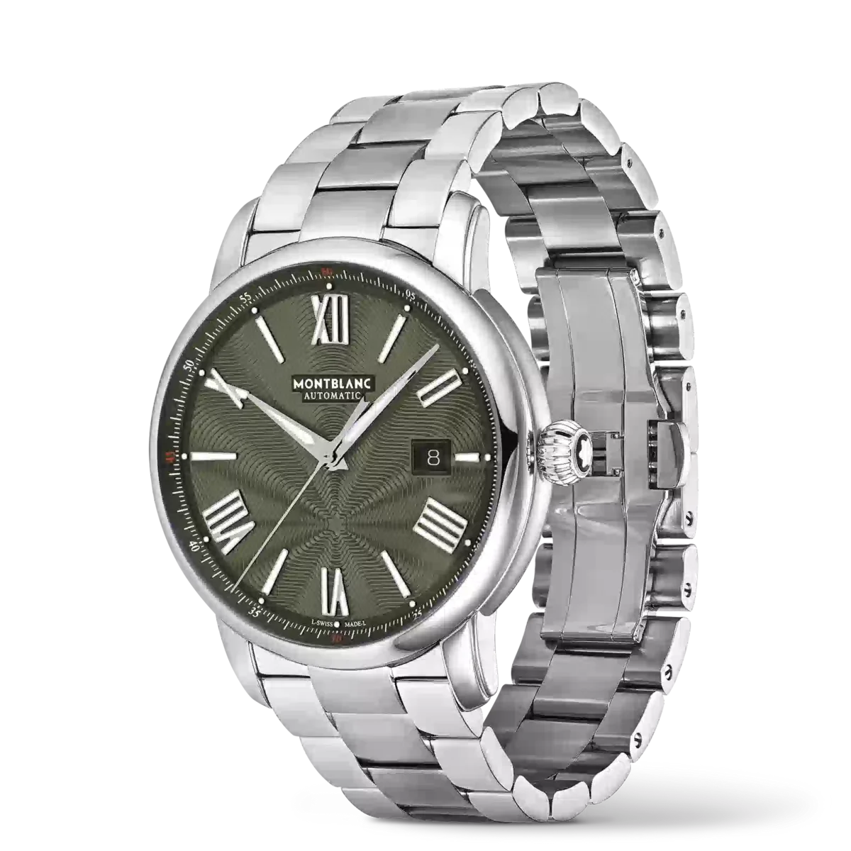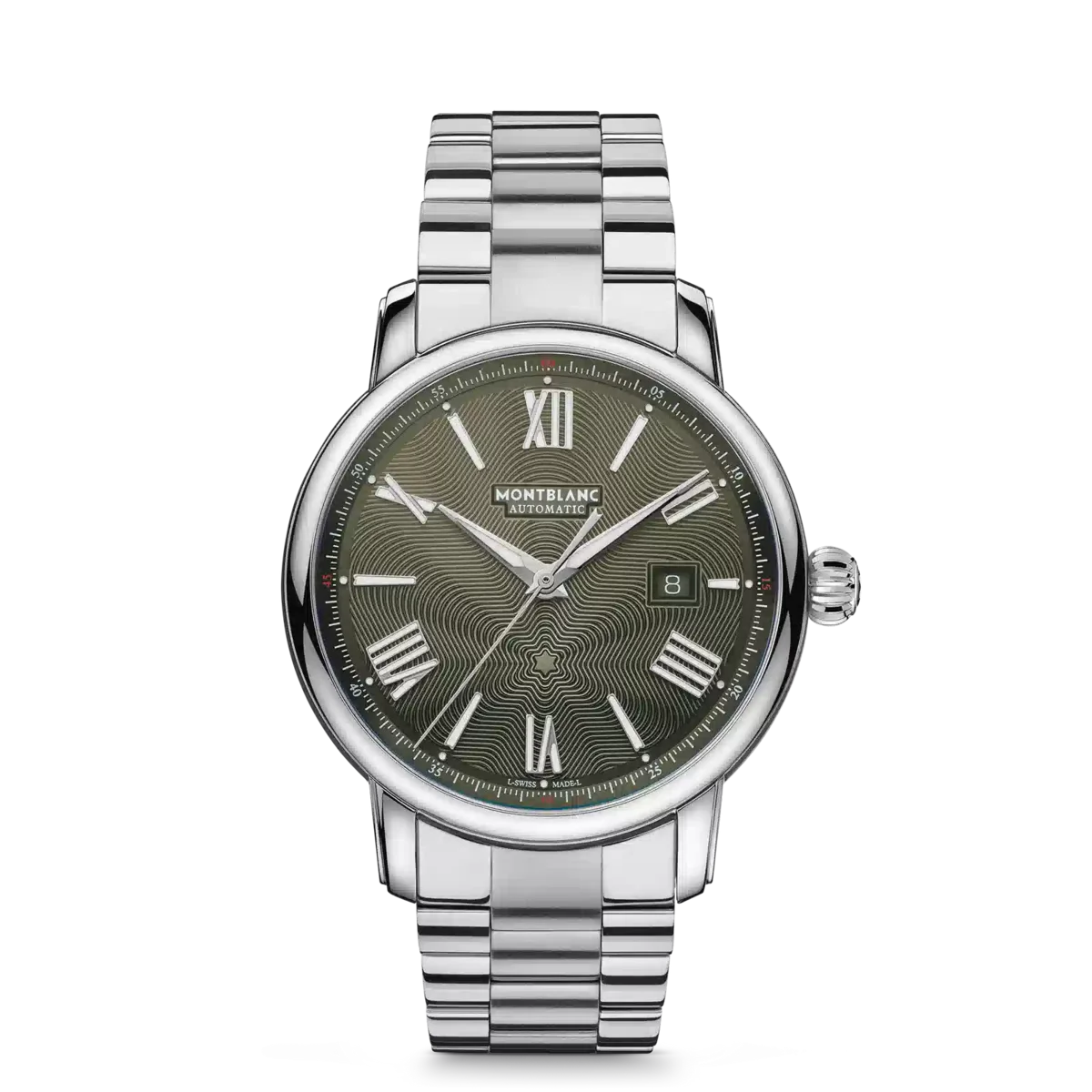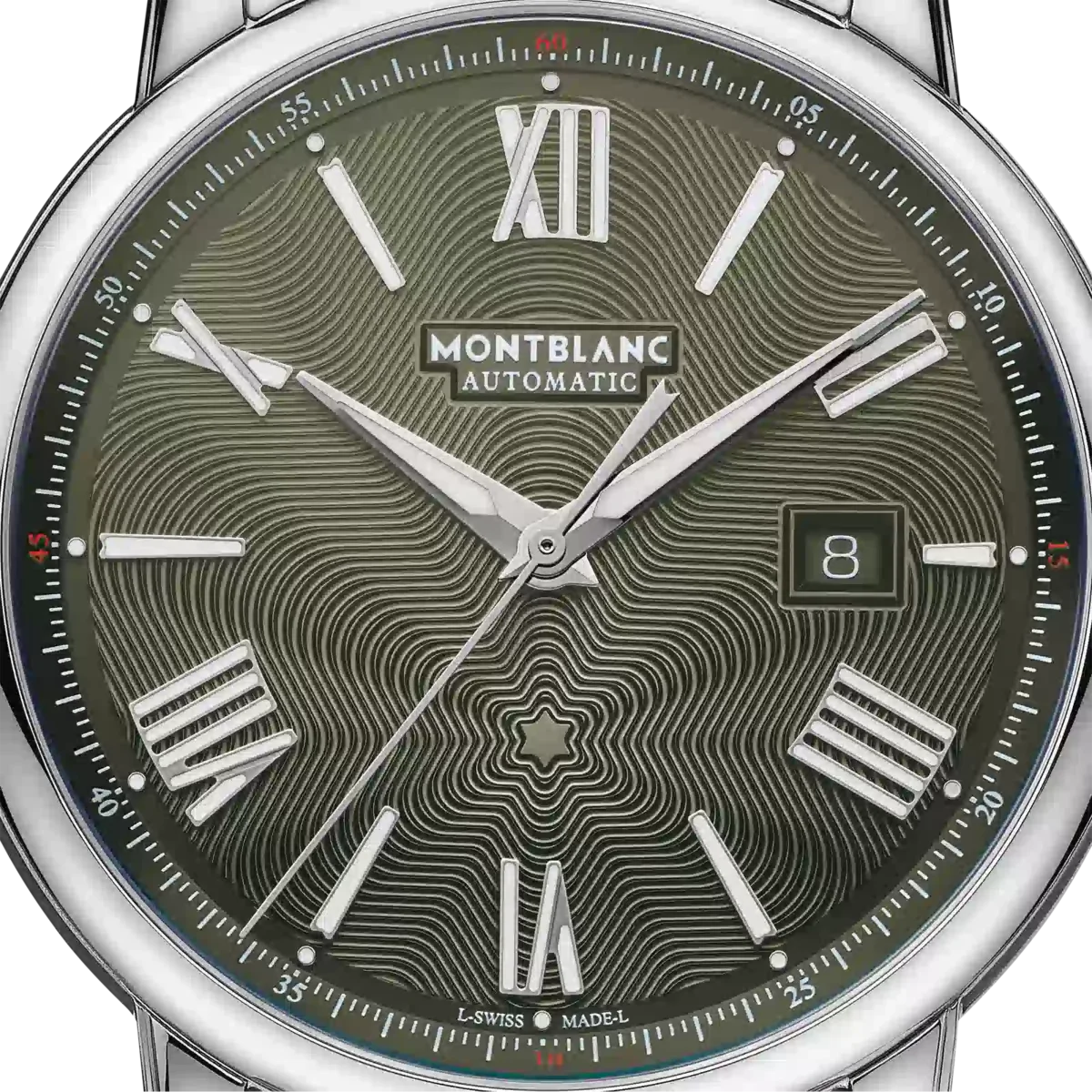 El Montblanc Star Legacy Automatic Date Limited Edition de 800 piezas está adornado con una esfera verde con el característico patrón de estrella explosiva de Montblanc y agujas y números en forma de espada recubiertos de rodio. Está impulsado por el movimiento automático MB 24.17 que indica las horas, los minutos, los segundos y la fecha. En cuanto al diseño, el reloj se inspira en los relojes de bolsillo Minerva de finales del siglo XIX y principios del XX, con sus cajas redondas, pulidas y con forma de guijarro, y sus coronas en forma de cebolla. Este reloj también está equipado con un brazalete intercambiable de acero inoxidable.