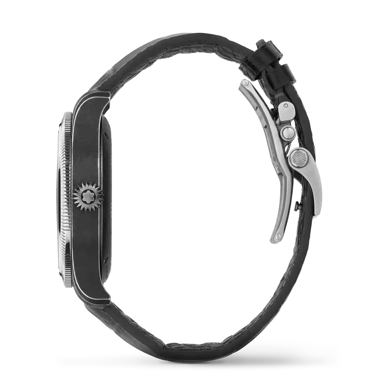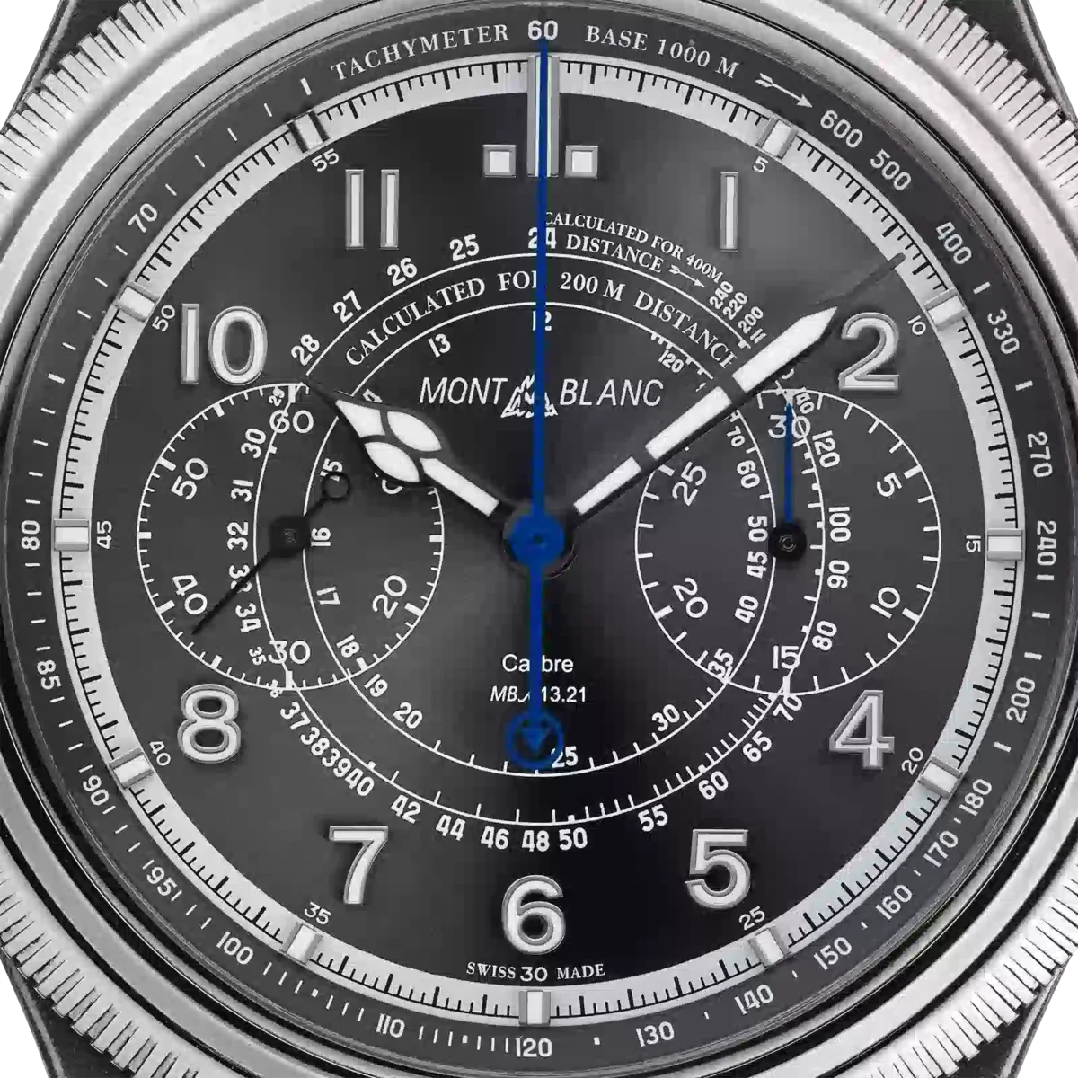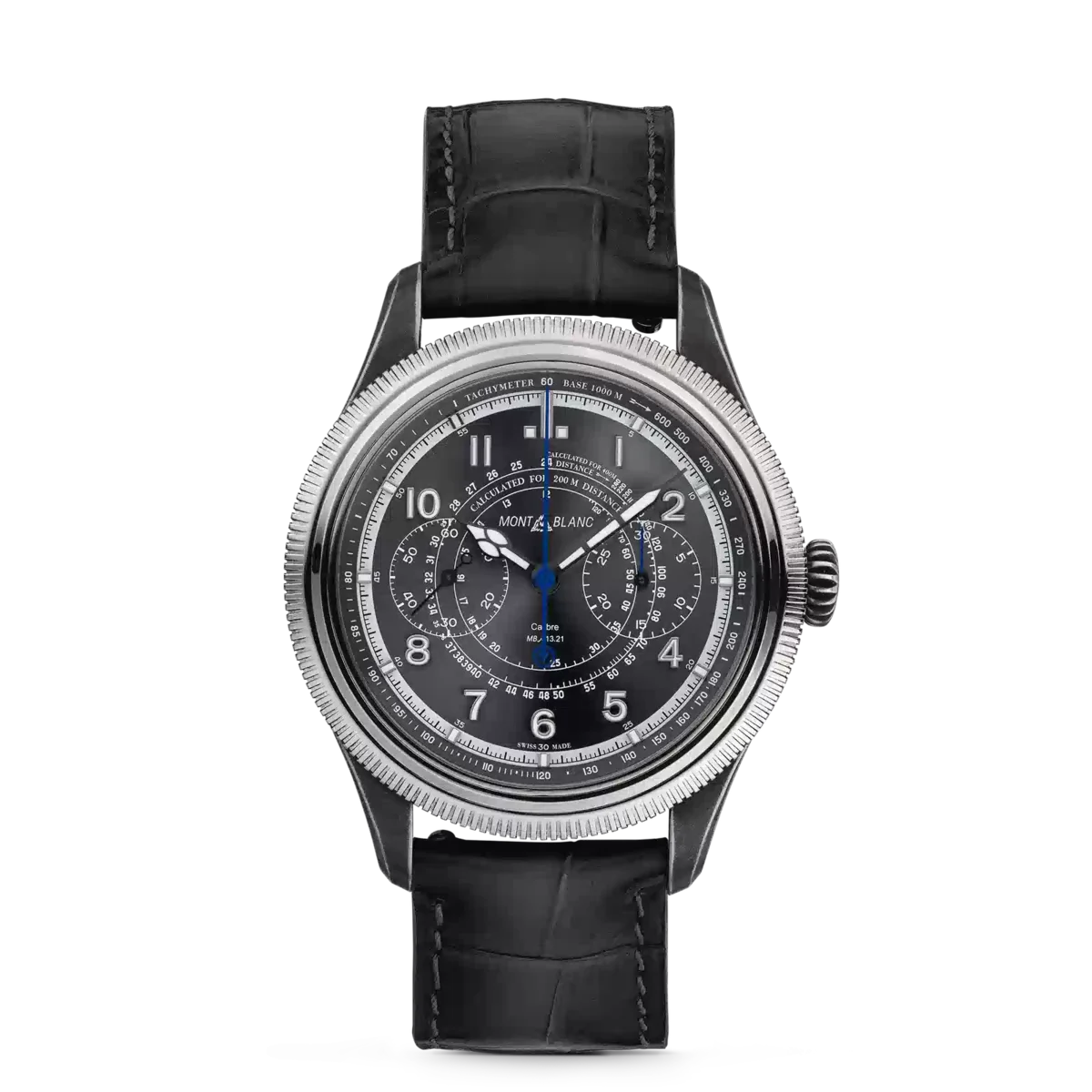El Montblanc 1858 Unveiled Timekeeper Minerva Limited Edition replantea lo esperado. En lugar de utilizar pulsadores tradicionales, el cronógrafo se activa a través del bisel estriado. Con solo un clic en el bisel estriado de oro blanco 750/1000 (18 quilates) se pondrá en marcha el cronógrafo. Un segundo clic lo detendrá y un tercer clic lo reiniciará, transformando el cronógrafo tal y como lo conocemos. El reloj viene en una caja de acero envejecido de 42,5 mm y está equipado con una esfera gris y una correa intercambiable de piel de becerro gris con estampado de cocodrilo. Está impulsado por el calibre MB M13.21 de cuerda manual y acabado a mano, y está limitado a 100 piezas. N.º de identificación: MB133246 Ancho de la asa: 21 mm
