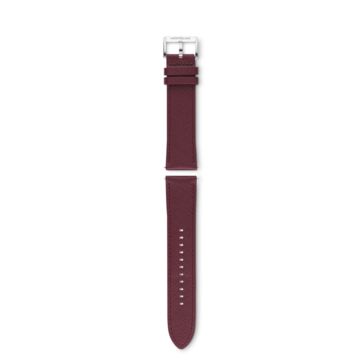 Correa de piel de becerro estampada saffiano burdeos de 22 mm con hebilla ajustable de acero inoxidable. Compatible con todos los relojes inteligentes Montblanc Summit.