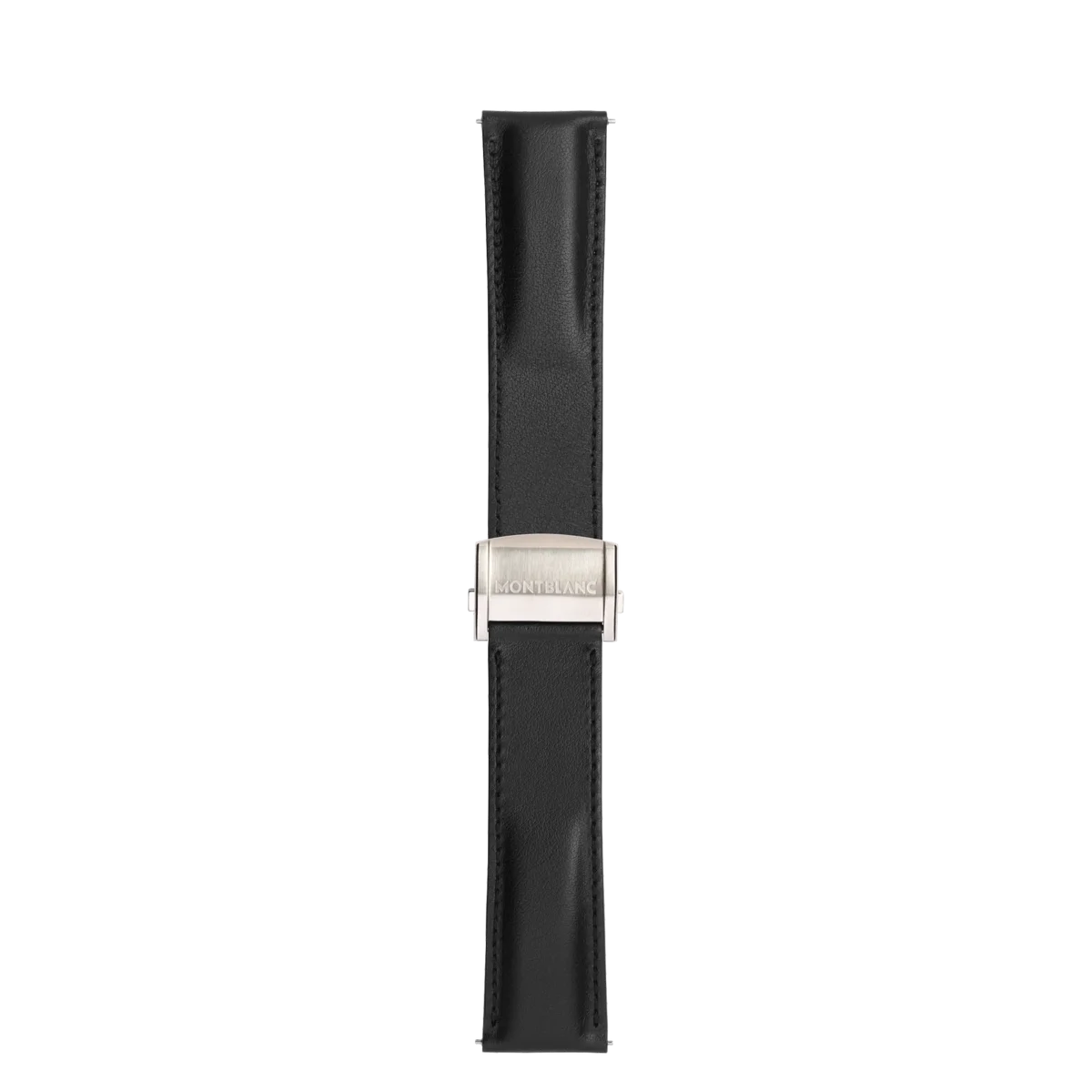 Correa de piel de becerro negra de 22 mm con cierre ajustable de acero inoxidable. Compatible con todos los relojes inteligentes Montblanc Summit.