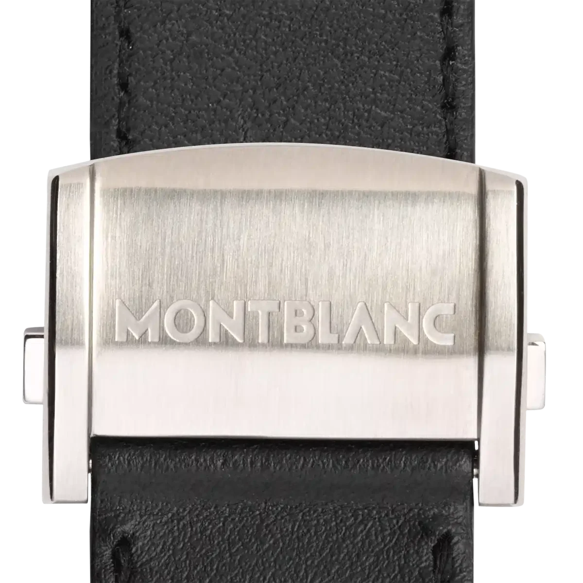 Descubra todos los detalles de la correa de piel negra. Compre online en la tienda oficial de Montblanc.