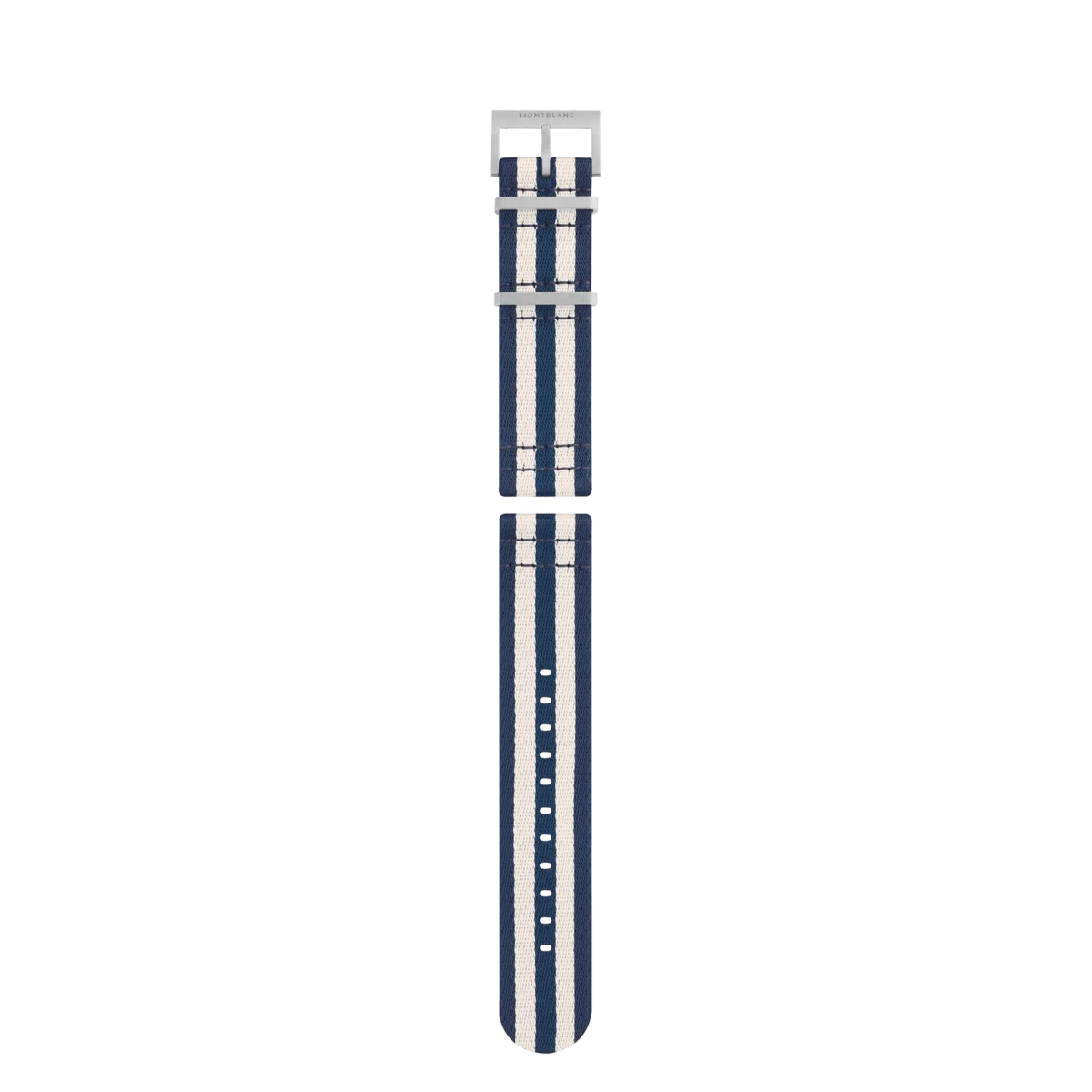 Descubra todos los detalles de la correa de nailon azul y blanco. Compre online en la tienda oficial de Montblanc.