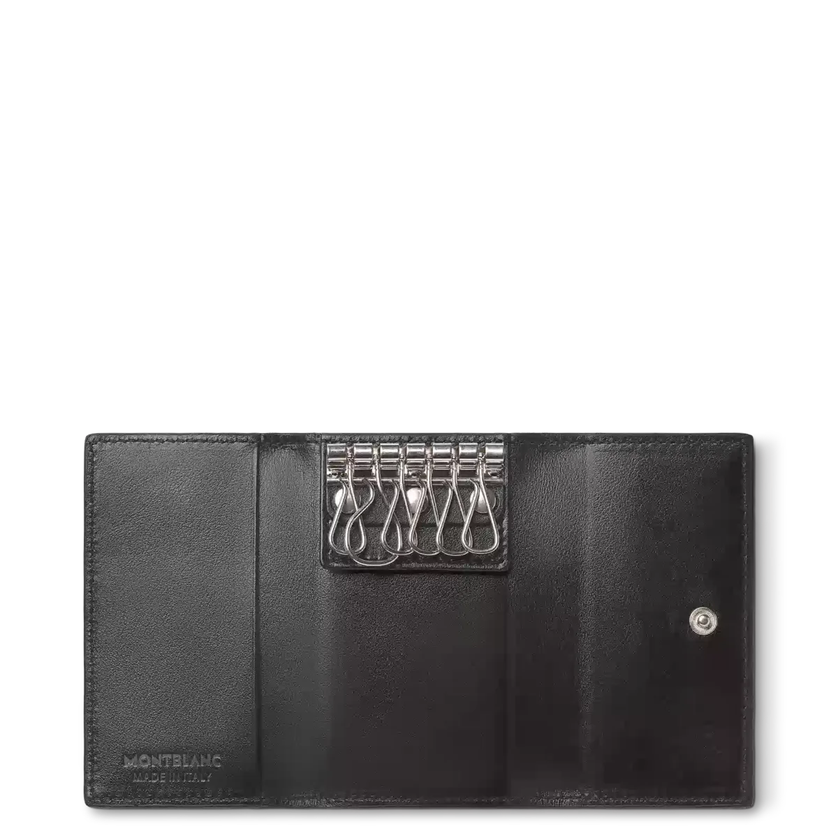Este elegante llavero Meisterstück, ideal para organizar sus llaves, está elaborado a mano en suave piel negra con un lujoso forro de tejido. Elegante y espacioso, cuenta con anillas para una llave de coche y cinco llaves adicionales, para que pueda tenerlo todo junto. Como toque final, el llavero está rematado con el emblema de Montblanc.