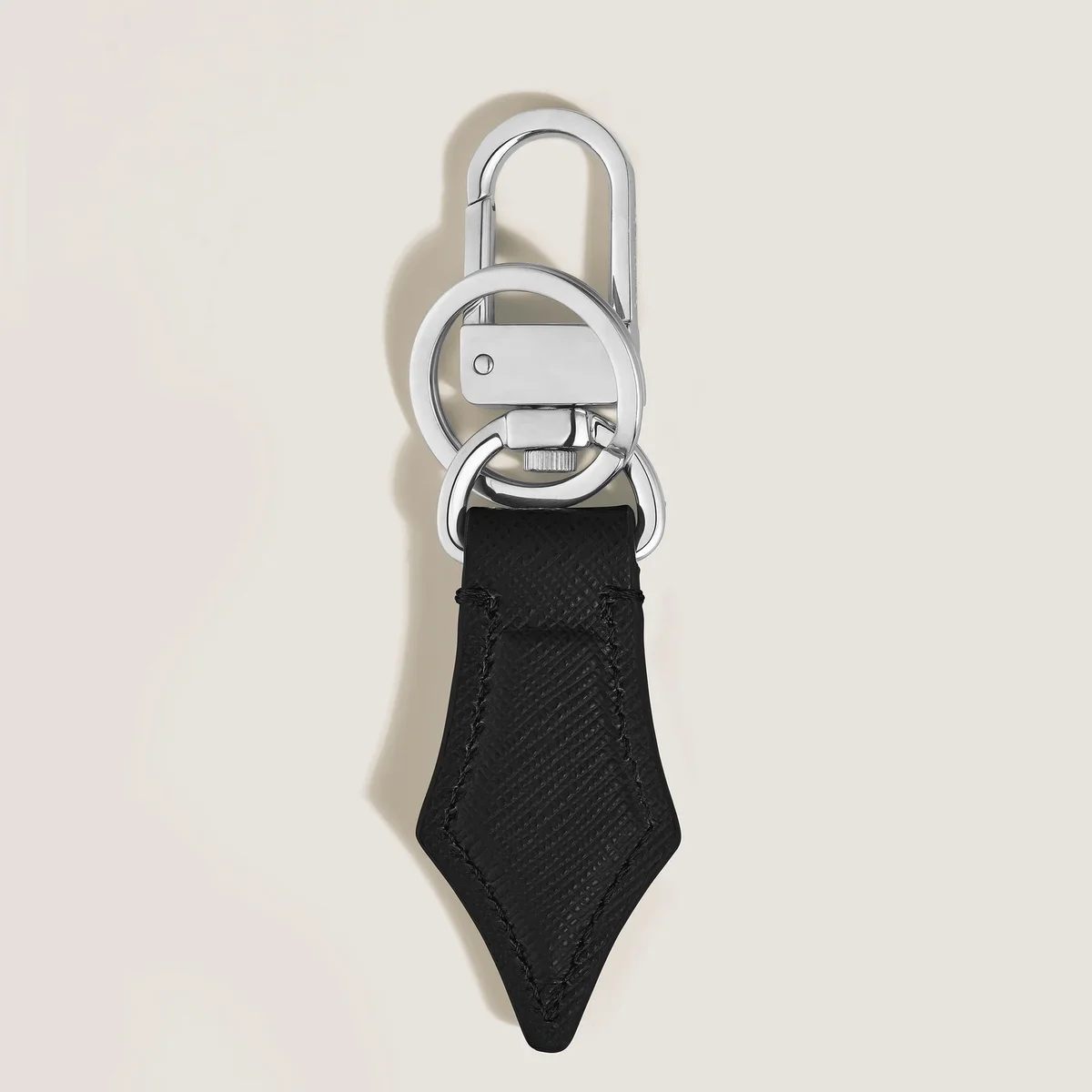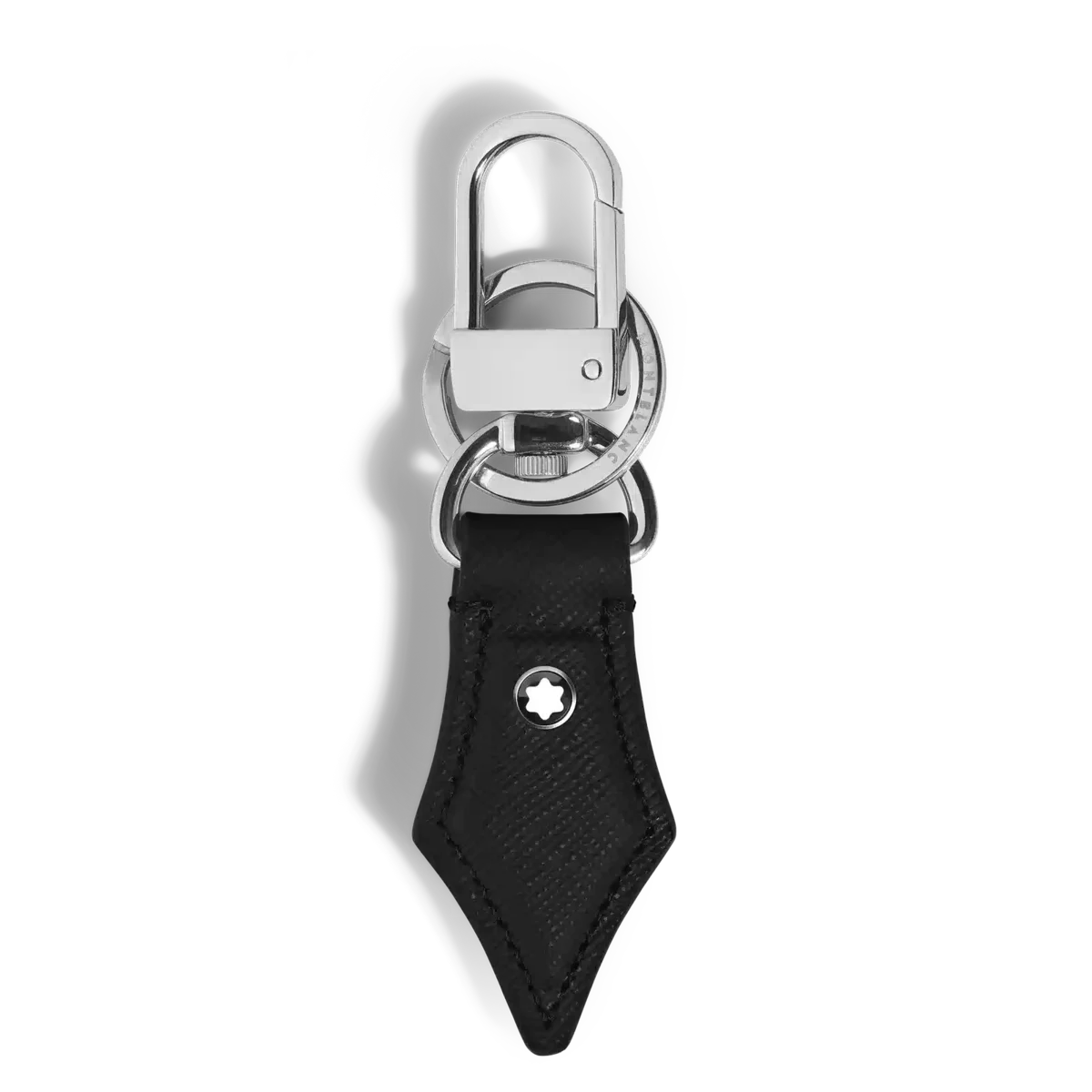 El llavero Montblanc, elaborado en piel negra repujada, rinde un sutil homenaje al arte de la escritura. Su forma inspirada en el plumín de una pluma estilográfica refleja el legado de Montblanc con detalles refinados. Diseñado para ser práctico, cuenta con una anilla resistente para sujetar varias llaves y un gancho fácil de abrochar para colgarlo del bolso.