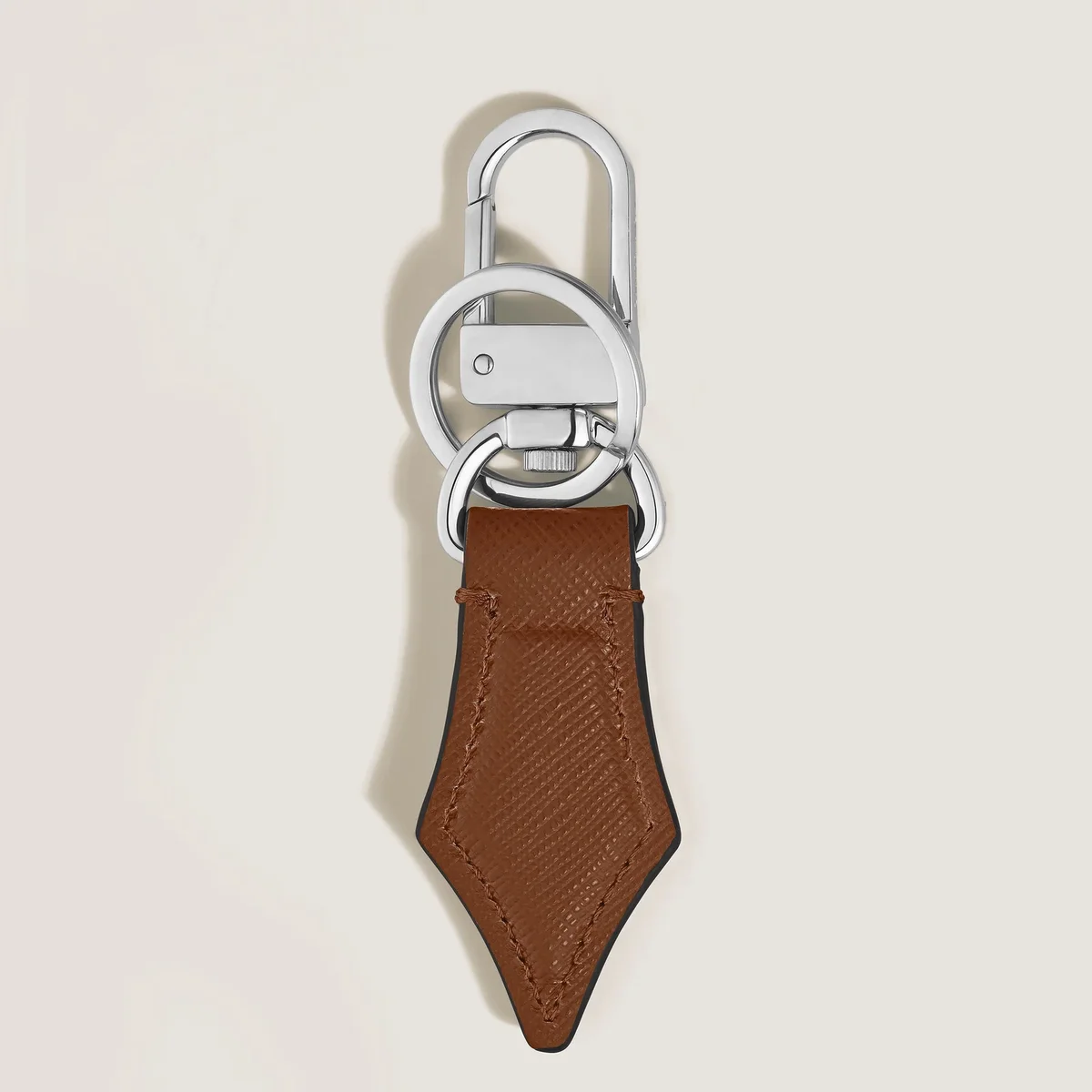 El llavero Montblanc, elaborado en piel sartorial fauve repujada, rinde un sutil homenaje al arte de la escritura. Su forma inspirada en el plumín de una pluma estilográfica refleja el legado de Montblanc con detalles refinados. Diseñado para ser práctico, cuenta con una anilla resistente para guardar varias llaves y un gancho fácil de sujetar para colgarlo del bolso.