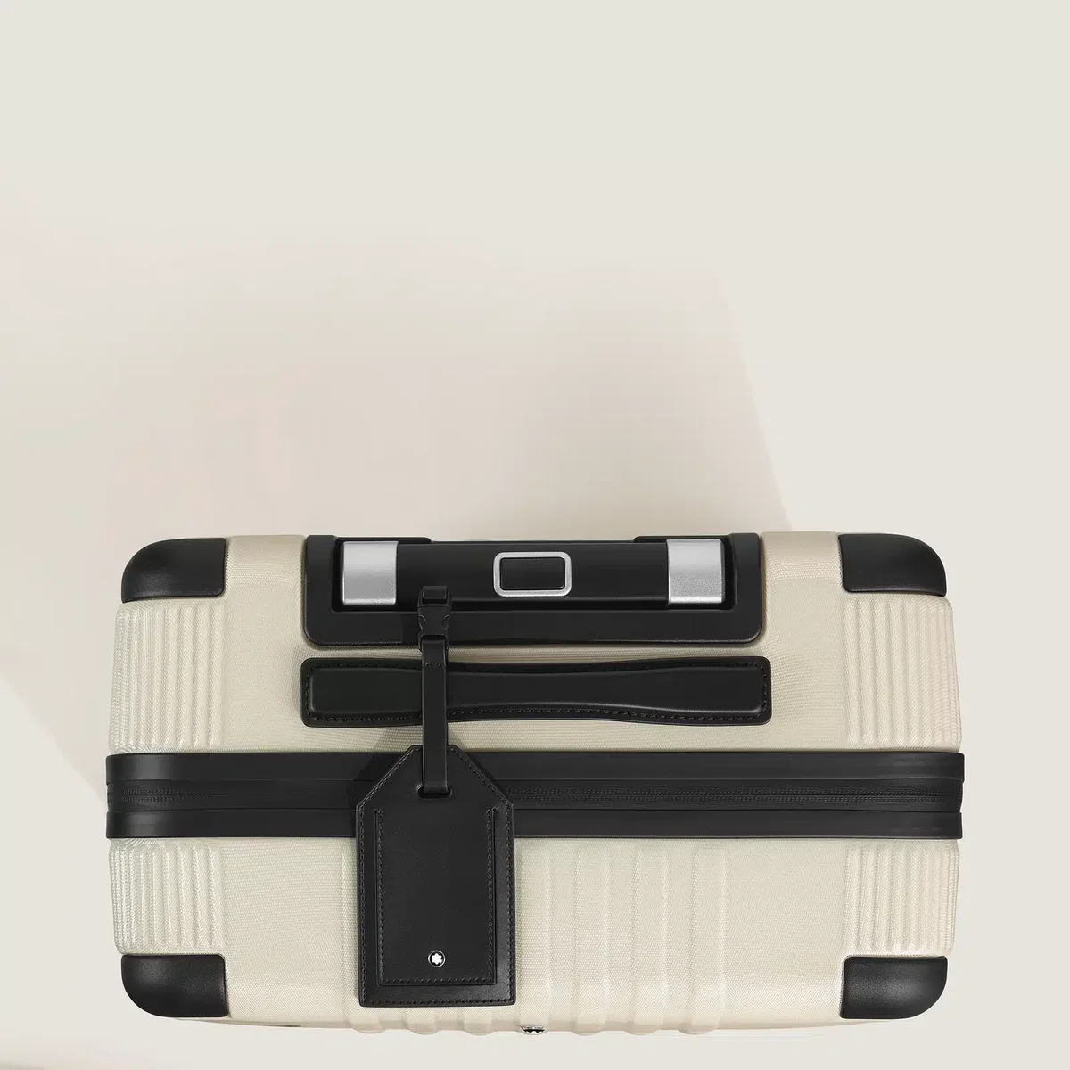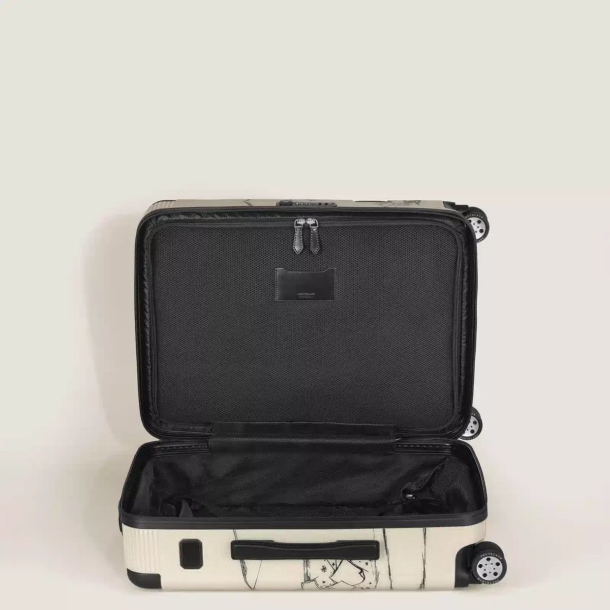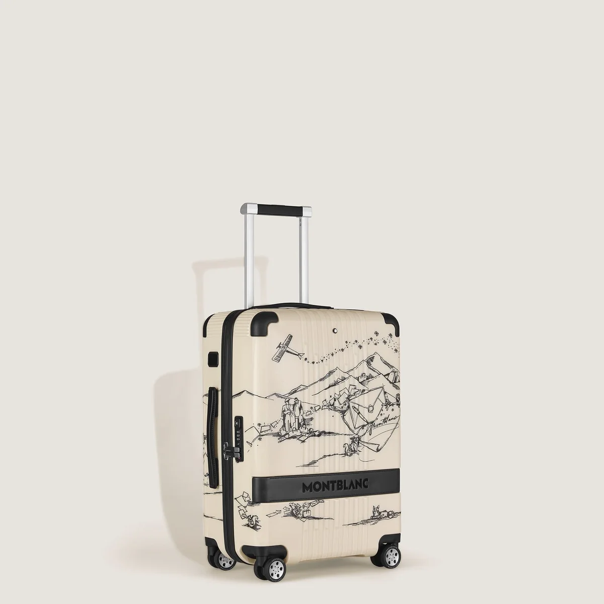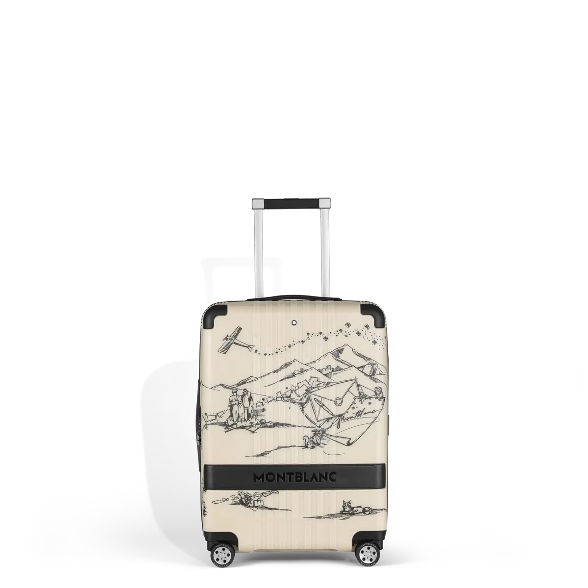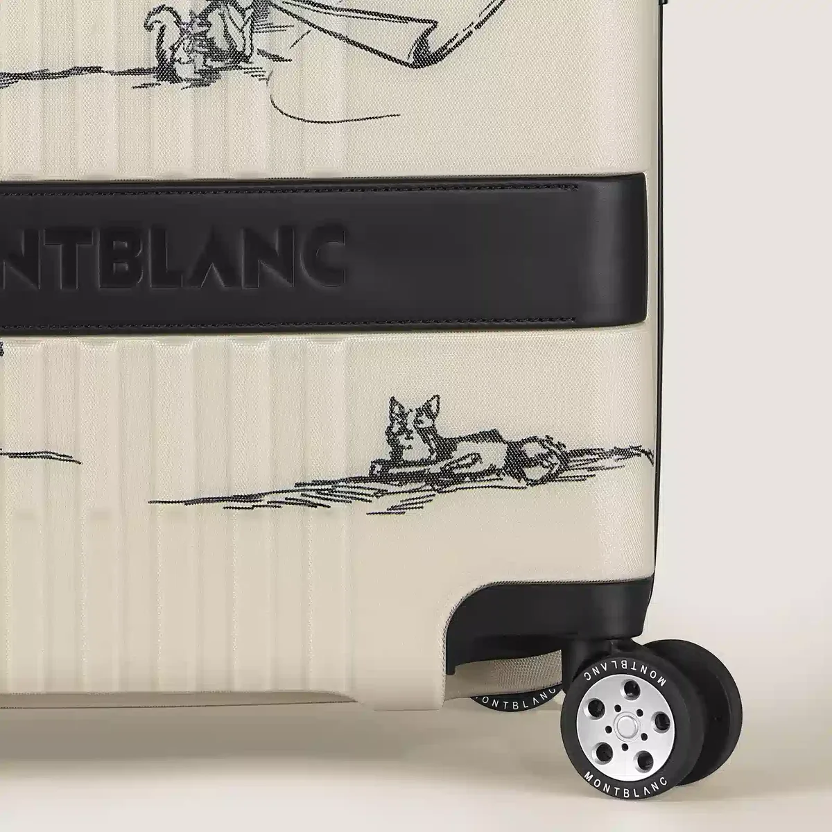Nuestra maleta con ruedas Happy Holidays es una elegante compañera de viaje para el viajero moderno. Fabricada en policarbonato de alto rendimiento con detalles en cuero negro, esta maleta combina durabilidad con un estilo sofisticado. Adornada con una escena invernal en el Mont Blanc, una técnica de serigrafía representa el viaje de la escritura a través de papeles y sobres arremolinados, la Meisterstück, bolsas de viaje y mucho más. El interior cuenta con dos compartimentos principales para organizar el equipaje, con bandas elásticas en un lado y una red negra en el otro. Con unas dimensiones de 38 x 55 x 23 cm, suele cumplir los criterios de equipaje de mano. Dado que las restricciones de equipaje de mano y de cabina pueden variar de una aerolínea a otra, se recomienda confirmar la normativa específica de su aerolínea antes de viajar.