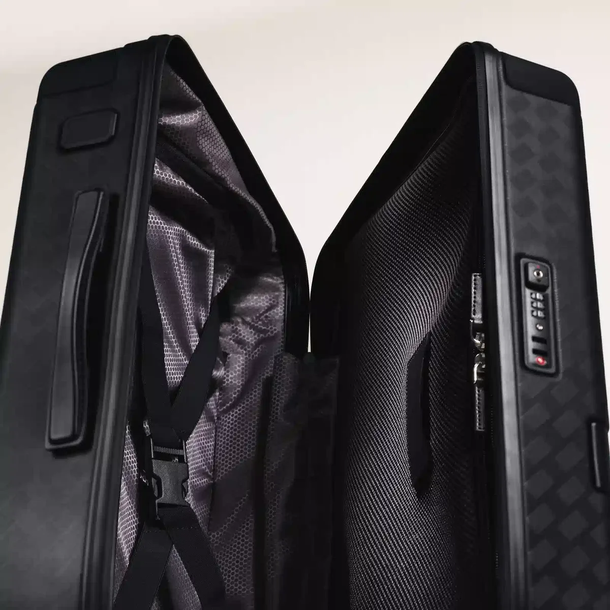 Este trolley de cabina #MY4810, que combina estética y funcionalidad, es el compañero ideal para viajes de negocios y escapadas urbanas. Sus ruedas silenciosas y sus cómodas asas de cuero con sistema multistop facilitan su transporte, mientras que la cerradura TSA añade seguridad y practicidad. La maleta, de 38 x 55 x 23 cm (volumen 37 l), suele ser aceptada como equipaje de mano. Su espacioso interior está dividido en dos compartimentos principales y cuenta con un tarjetero.